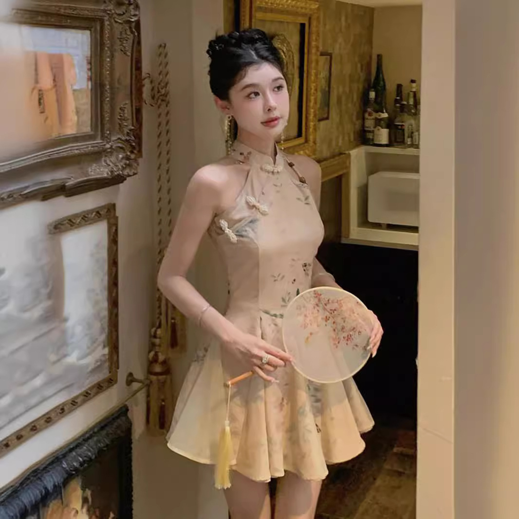 改良されたチャイナドレス新しい中国風のドレス2025新しい若い女の子のスリムウエスト夏クールな感触