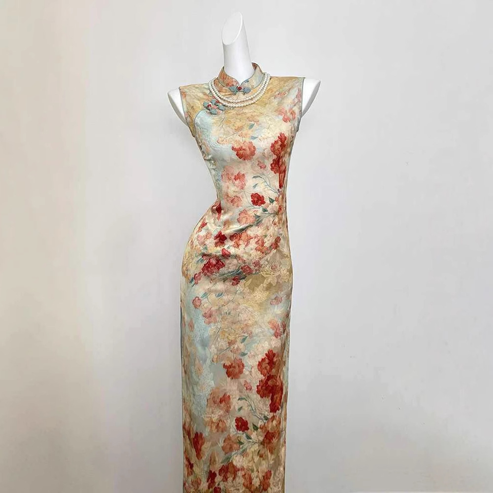 プリントのチャイナドレスを改良して、若いタイプの少女の復古民国風気質が気高いです。