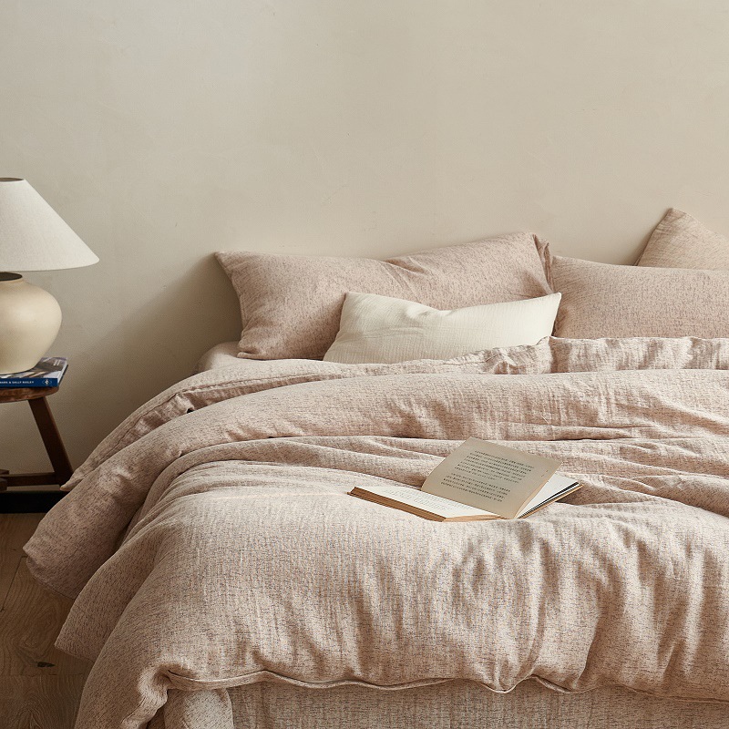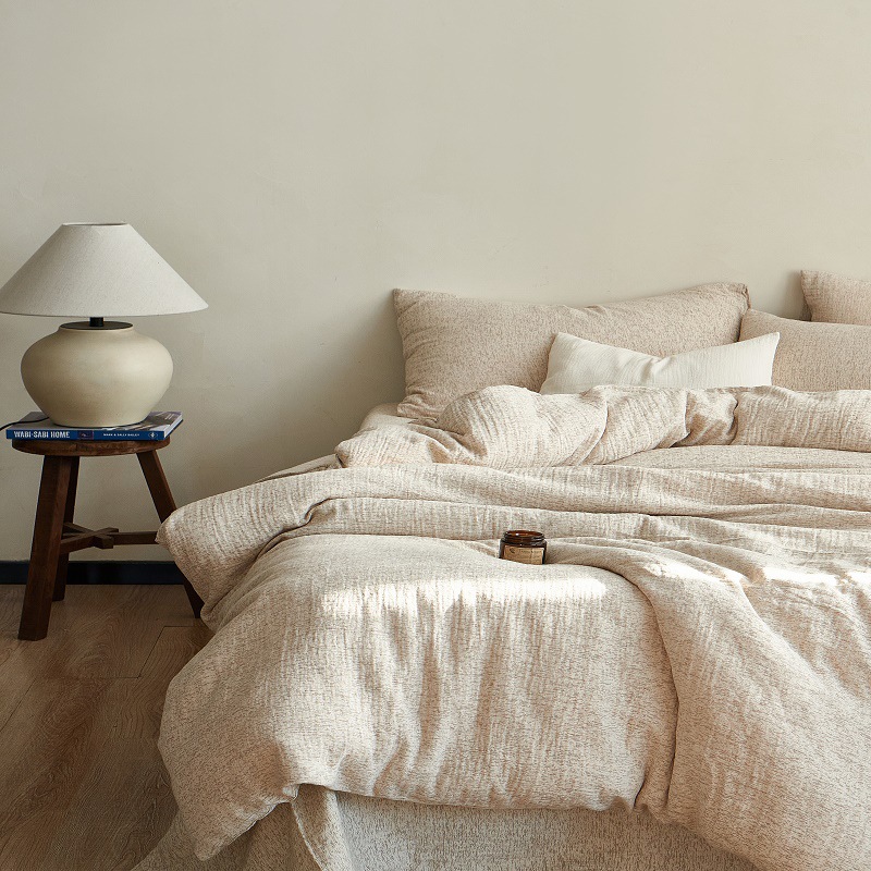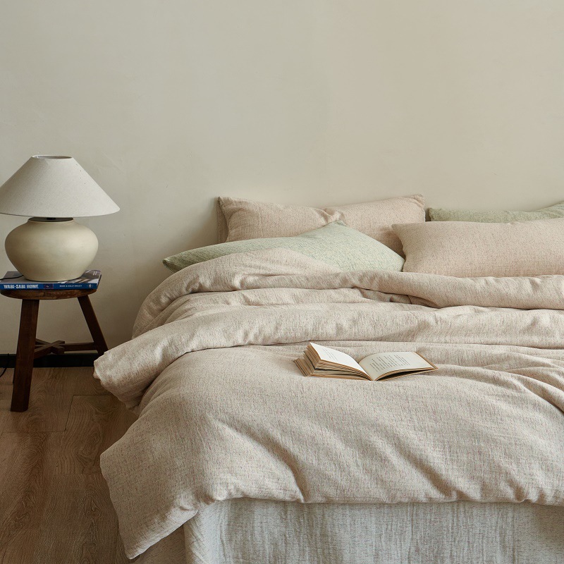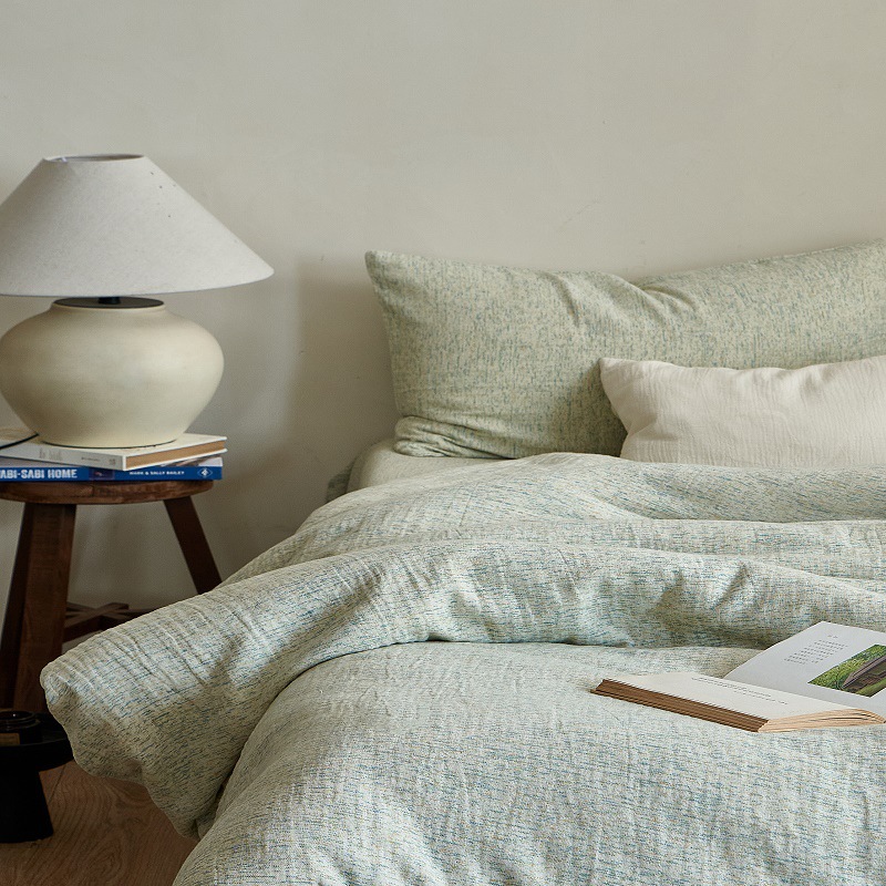 日系侘寂风全棉色织加密双层纱超柔素色质朴床上用品四件套被套