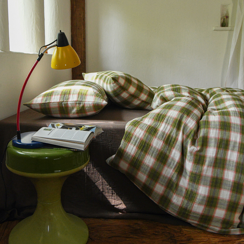 日系民宿风全棉色织双层纱四件套亲肤透气四季款纯棉床品被套床单