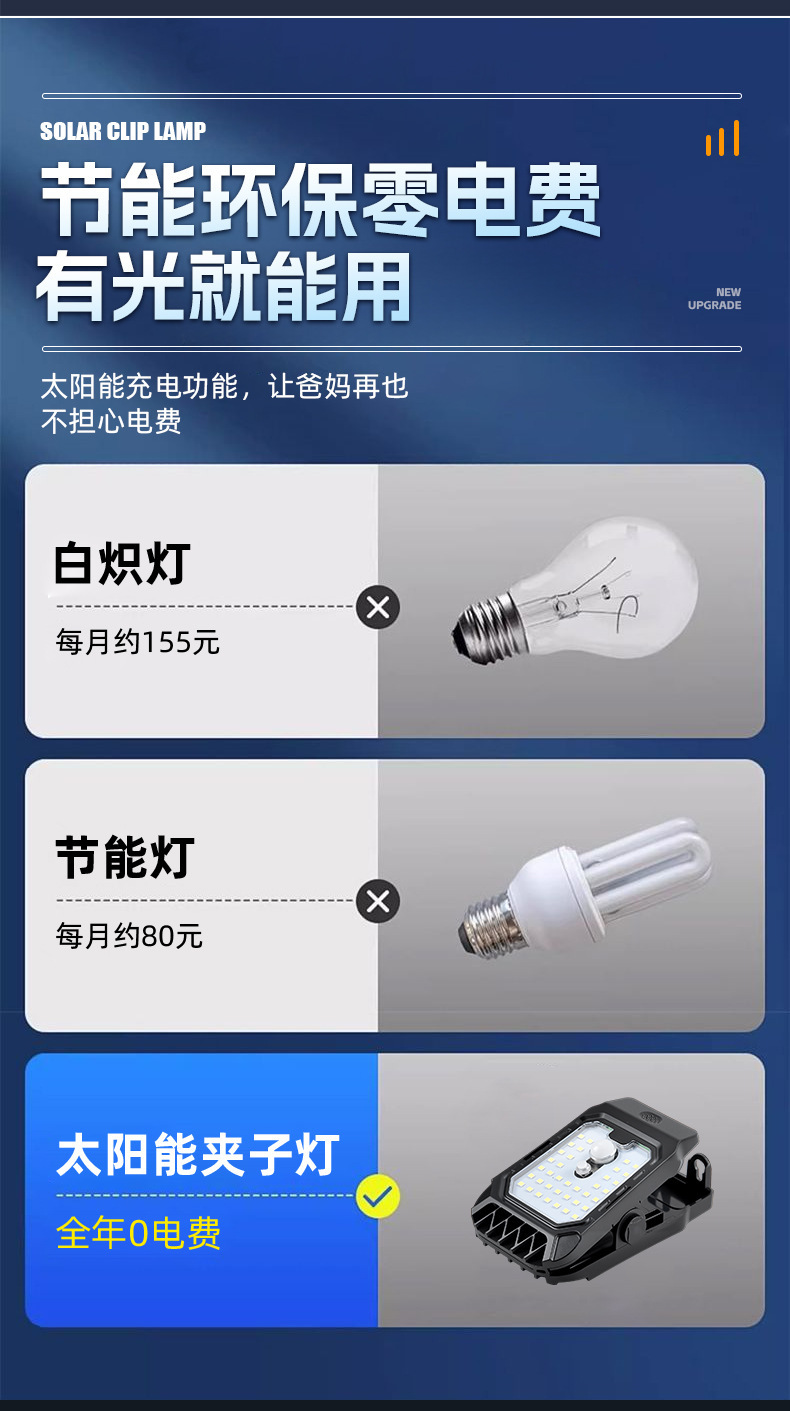 夹子太阳能夜市灯超亮充电灯摆地摊户外灯露营应急照明LED夹子灯