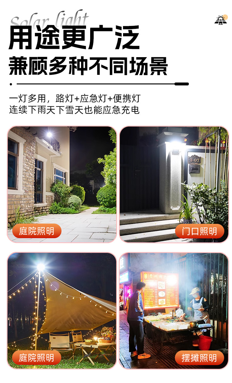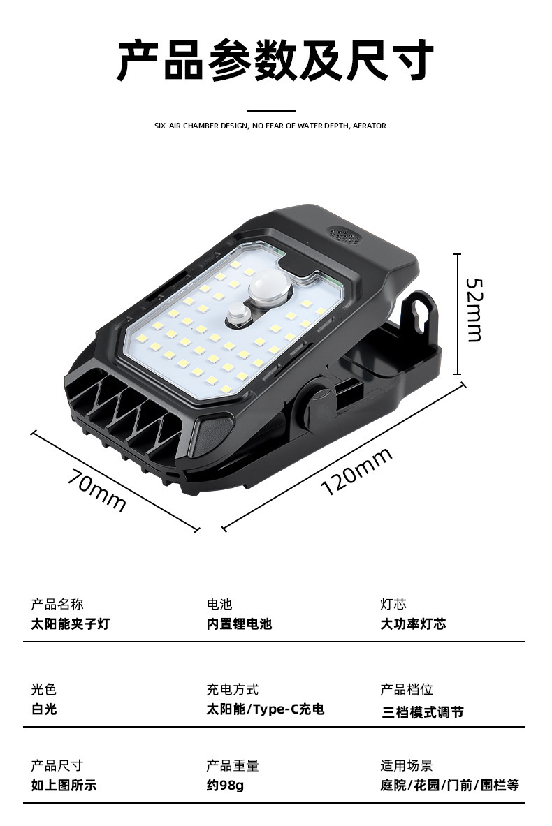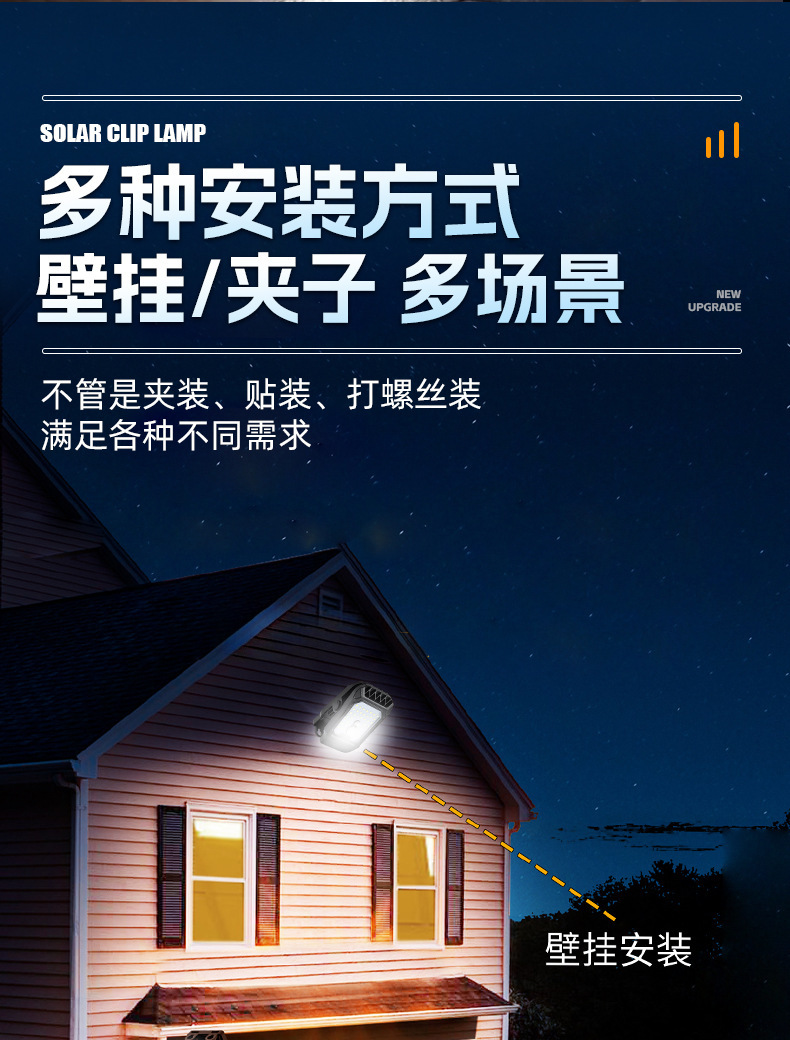 太阳能户外灯庭院围栏夹子灯壁灯人体感应应急照明露营摆摊灯路灯