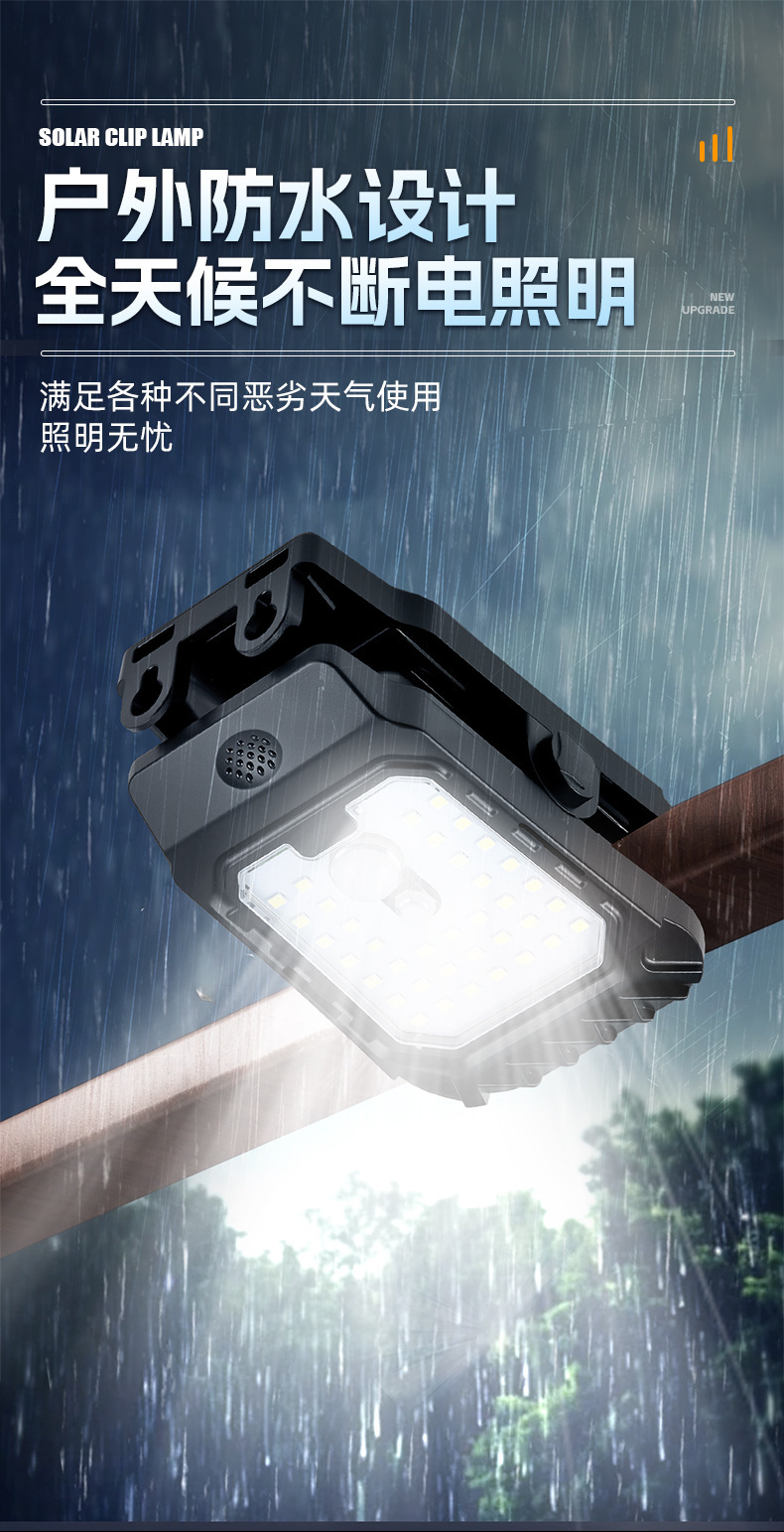 新款升级智能感应太阳能夹子灯户外庭院灯花园照明灯太阳能壁灯