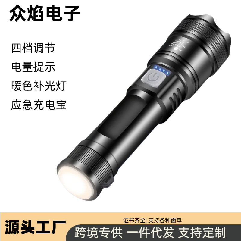 クロスボーダー超強力遠光懐中電灯屋外P50多機能集光ズーム懐中電灯充電緊急携帯懐中電灯