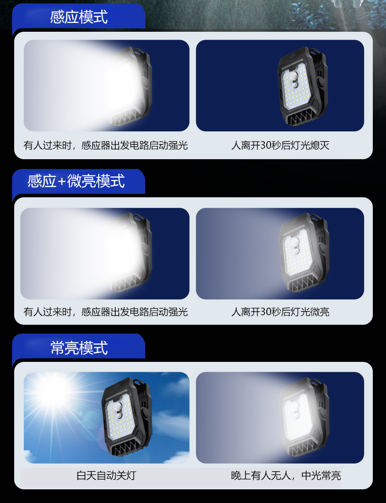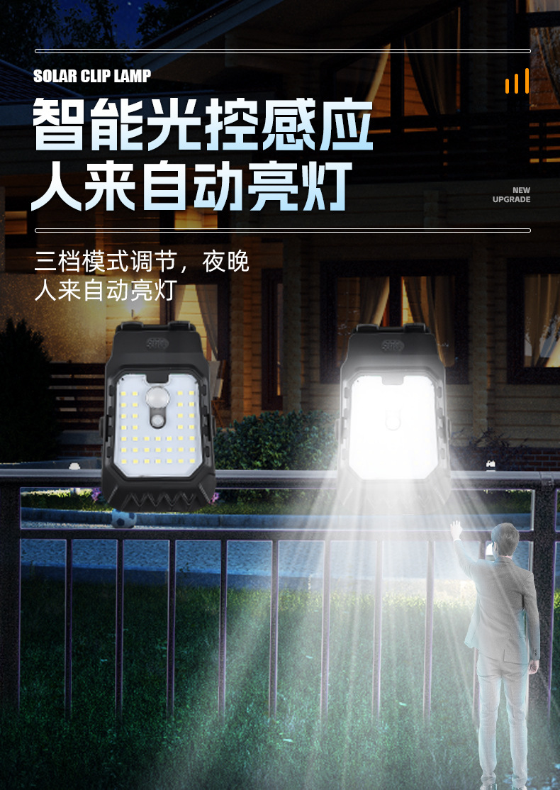 新款升级智能感应太阳能露营夹子户外庭院灯花园照明灯太阳能壁灯