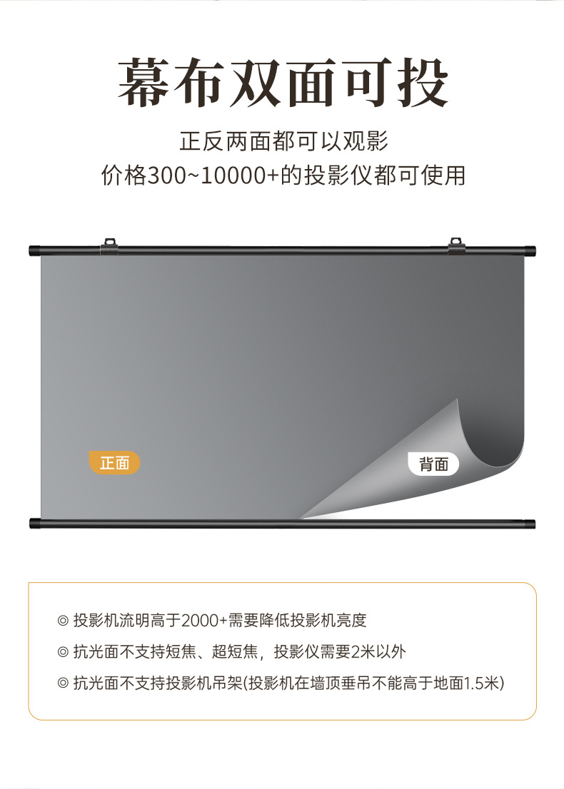 免打孔金属抗光壁挂投影幕布4K高清贴墙客厅白天直投幕布抗光幕布