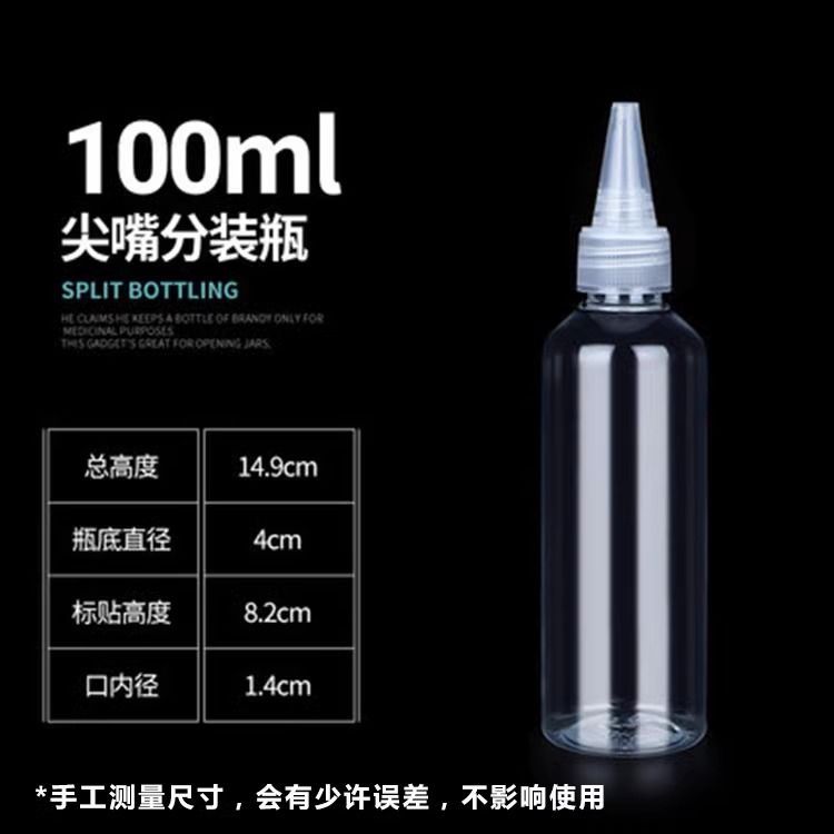 スポット卸売り50 100mlミリリットル押出瓶調色瓶乳液顔料分注瓶透明プラスチック尖口瓶
