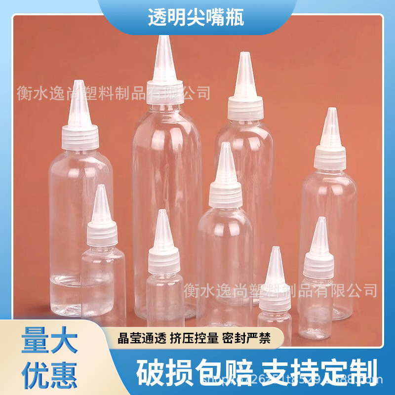卸売り尖口瓶50 100mlミリリットル押出瓶調味料瓶乳液顔料分注瓶透明ペットボトル