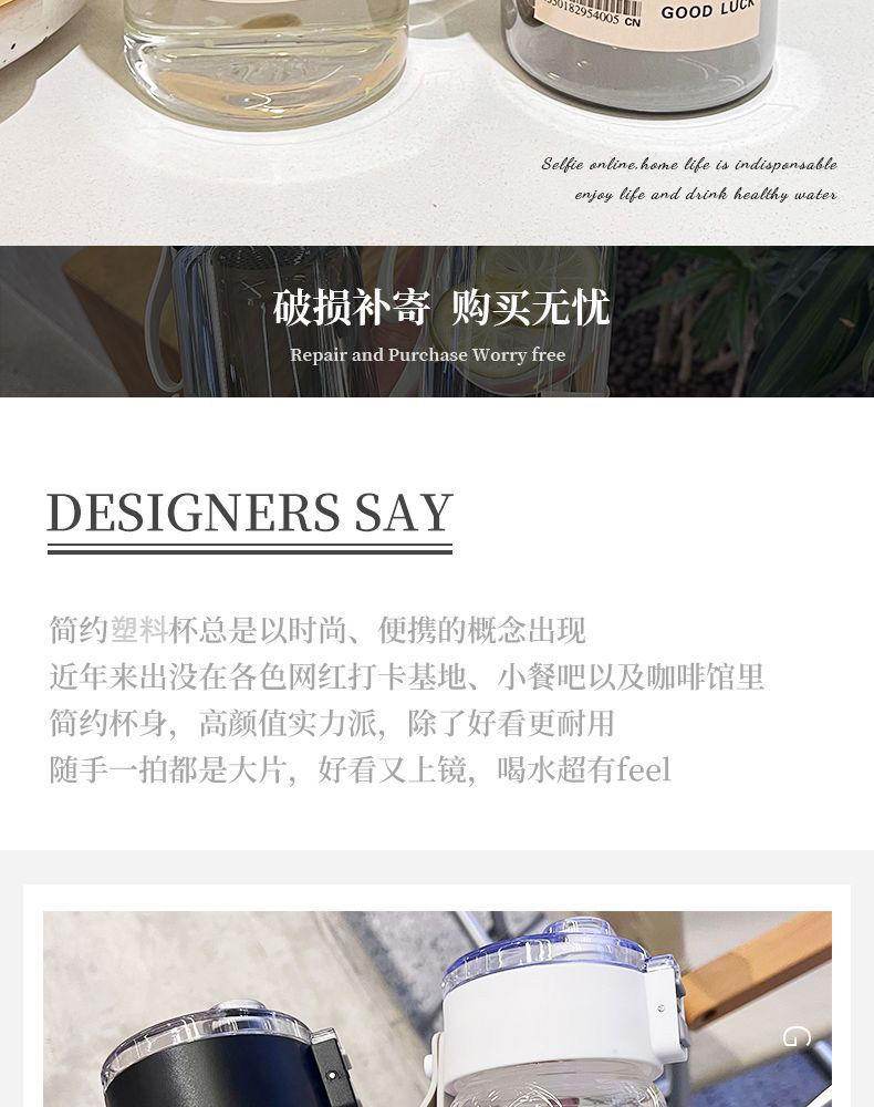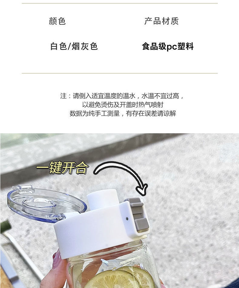 无印简约耐高温高颜值塑料水杯随手杯户外运动杯子弹跳礼品杯