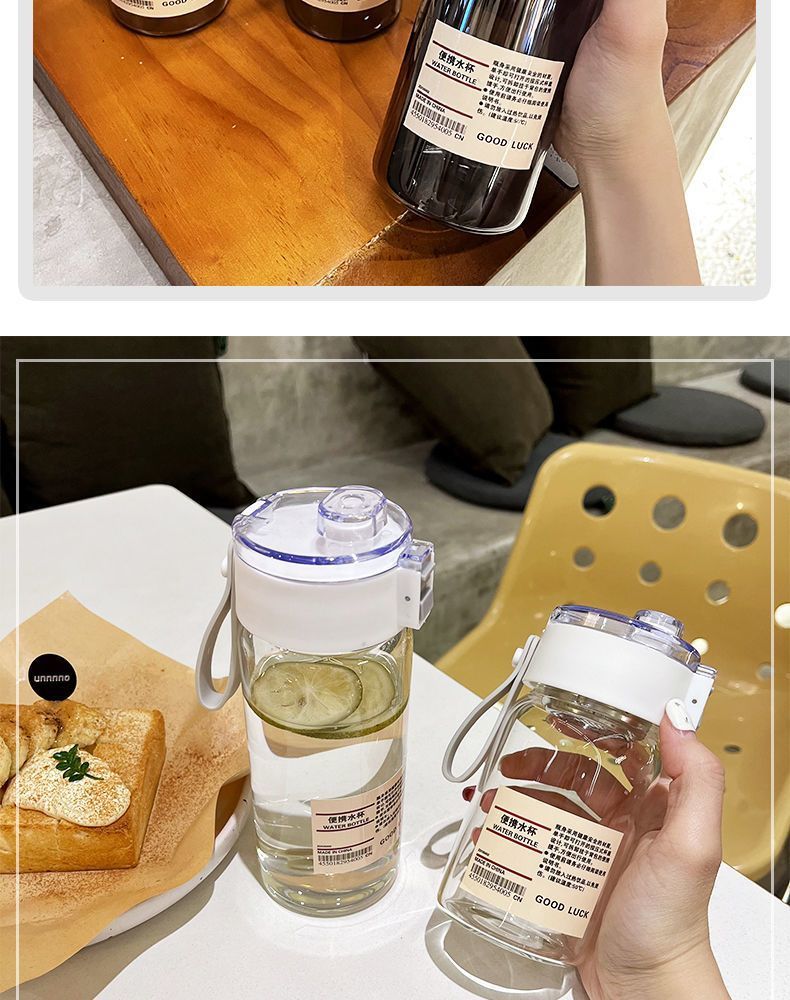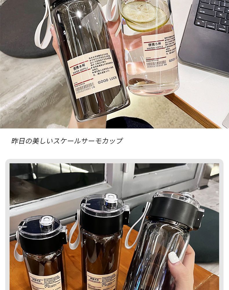 シンプルで高温に強い、見た目も美しい、携帯に便利なプラスチック製水筒、無印良品風、学生向け携帯用プラスチック製水筒