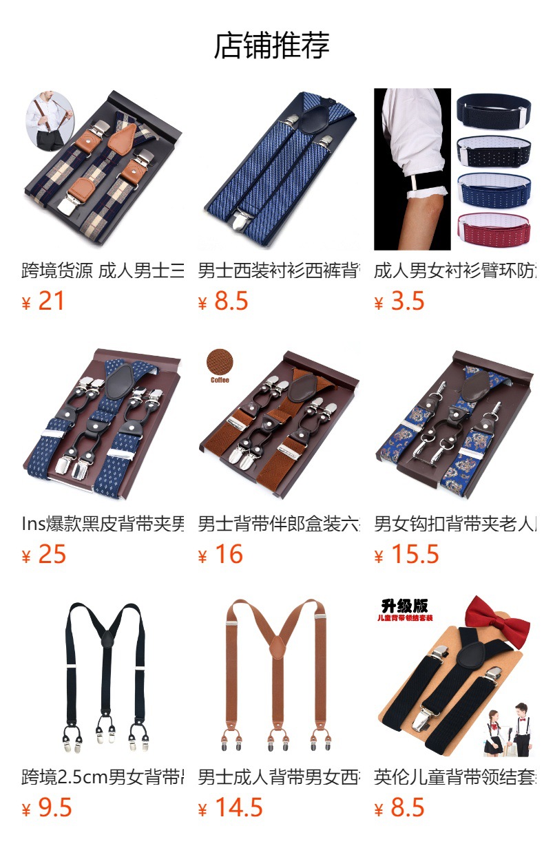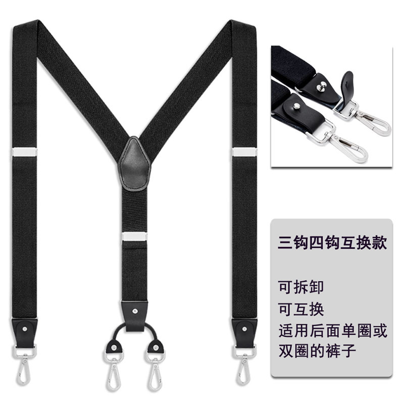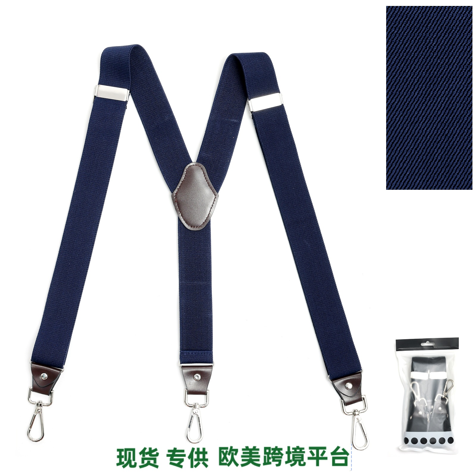 跨境货源3.5cm成人男女通用3夹勾扣背带Y型背带夹皮革钩子吊裤带