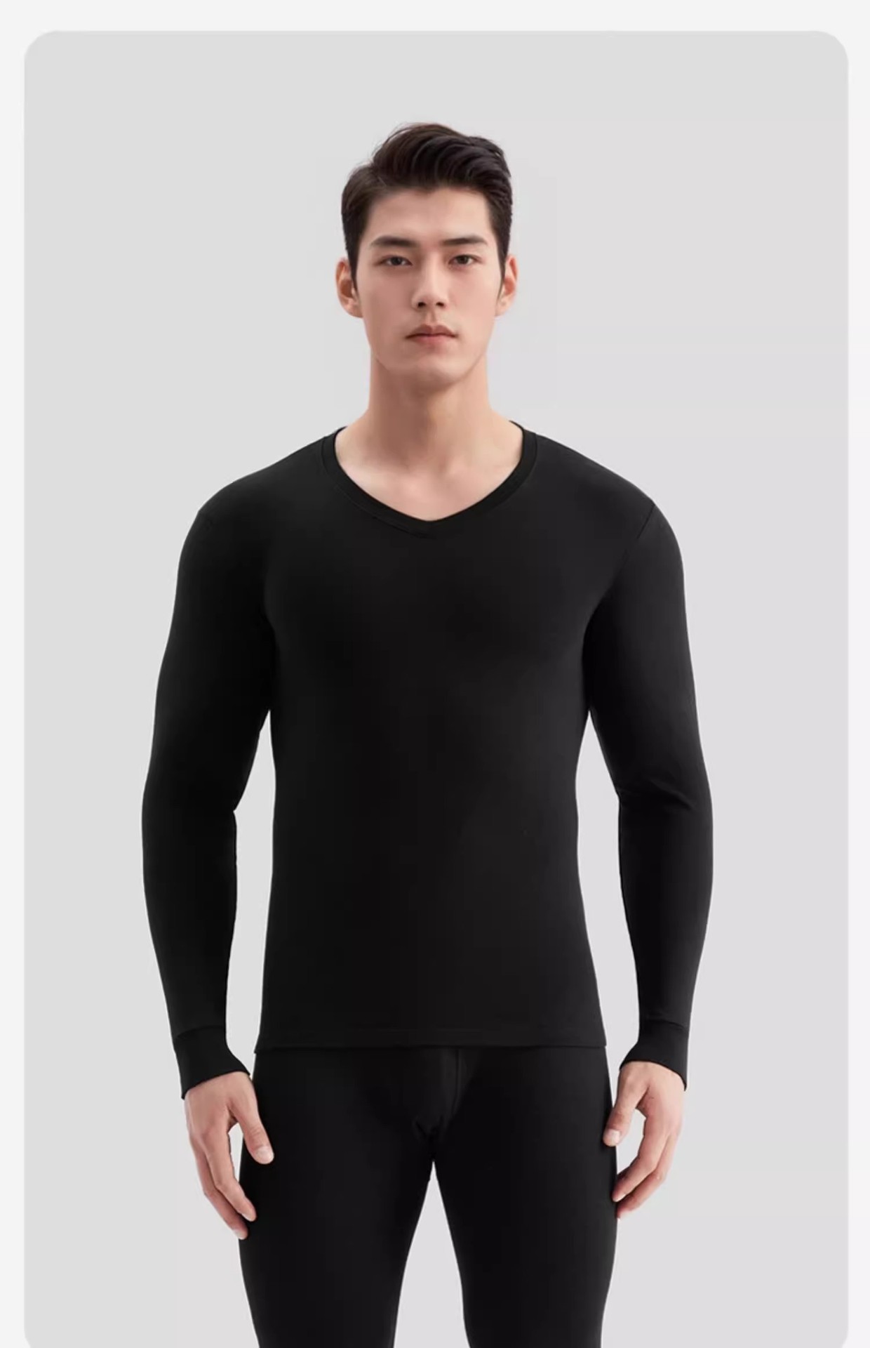青年の基礎の男性の保温の下着のスーツの秋のズボンの綿のセーターの薄いタイプのタイトな低い襟のvネックの底のシャツ