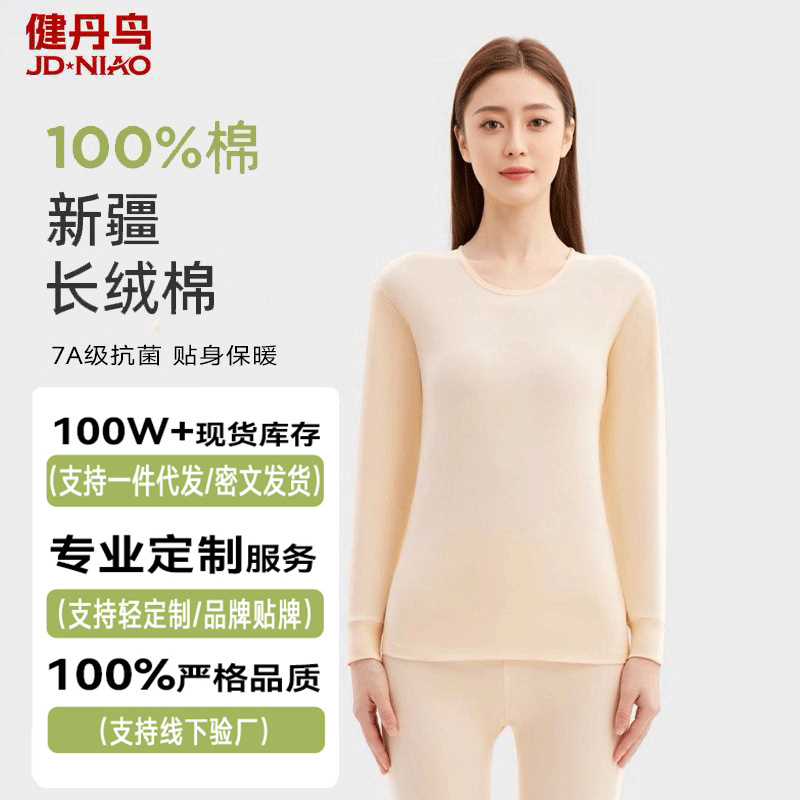 健丹鳥純綿保温下着女性抗菌薄いタイプの底には、全綿のセーター秋衣秋ズボンセットを着ています。