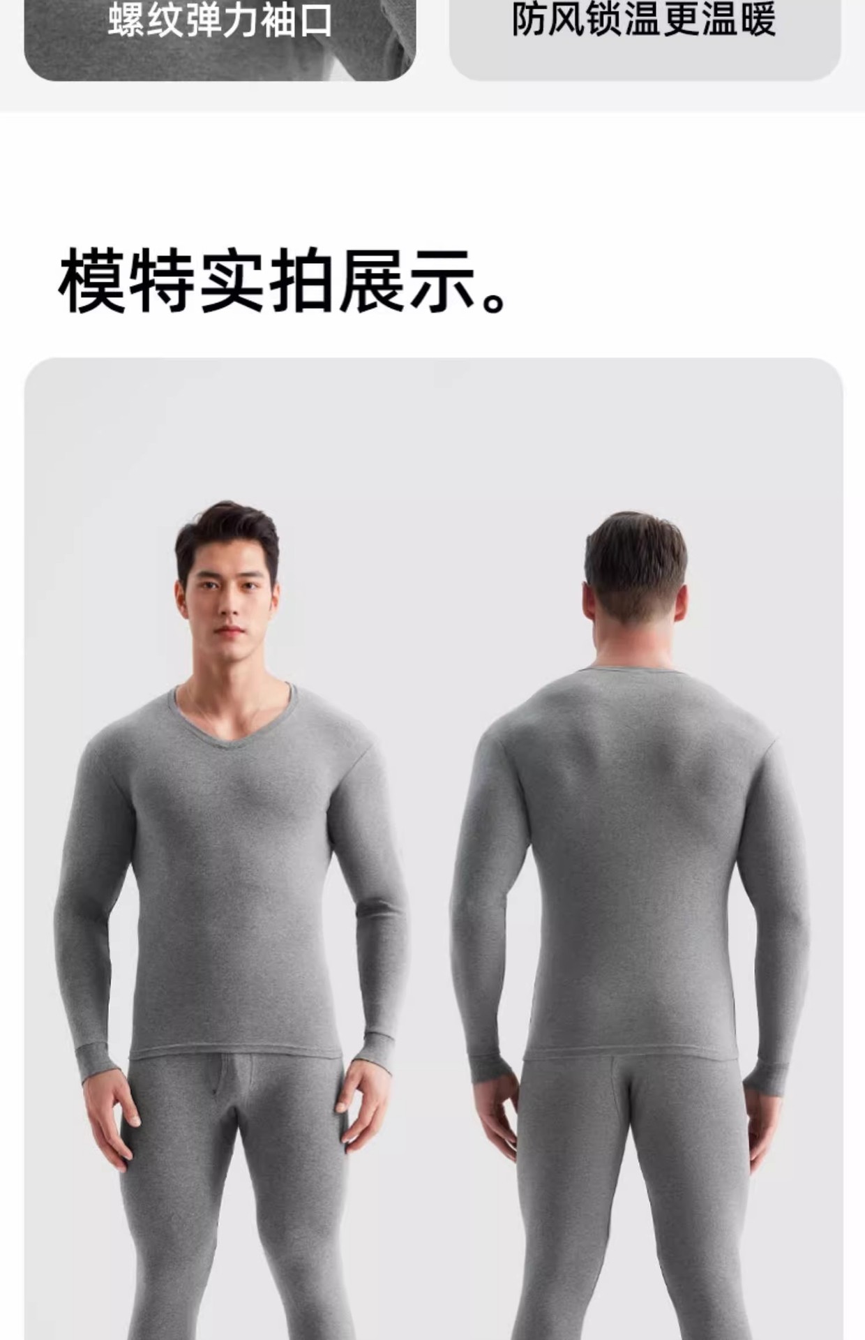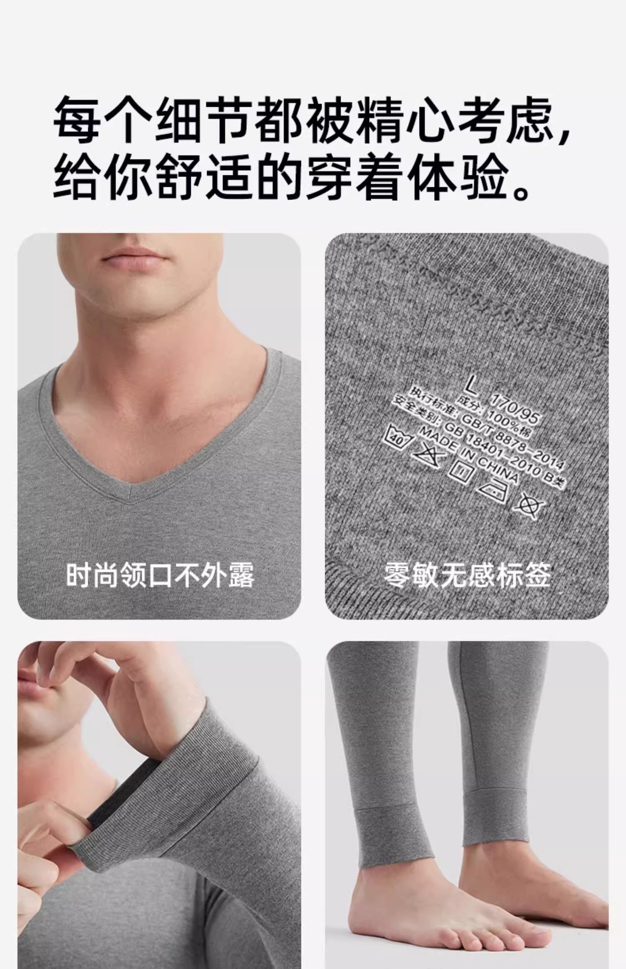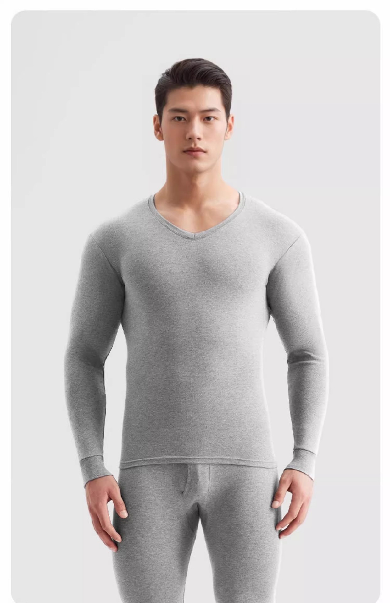 健丹鸟男士纯棉V领秋衣秋裤套装打底内搭薄款保暖内衣线衣线裤冬