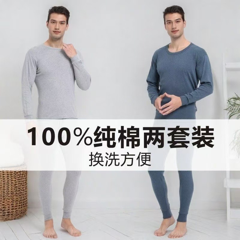 カスタム加工純綿保温下着セット 男女兼用 ベースレイヤー 綿100% 秋服 秋パンツ 丸首 工場卸売
