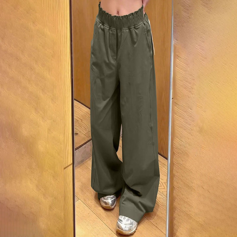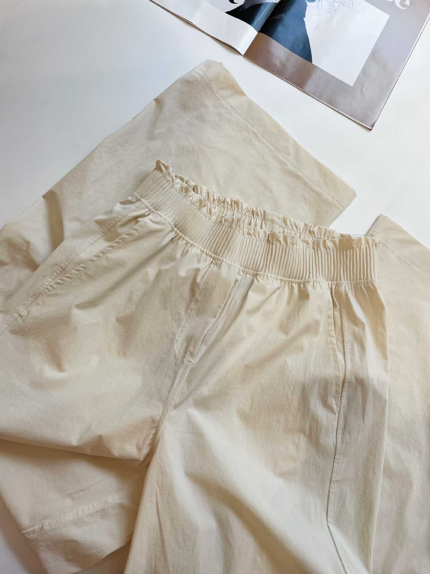 lulu zgly腰部褶边松紧腰休闲阔腿裤 女夏薄款直筒宽松跑步户外运