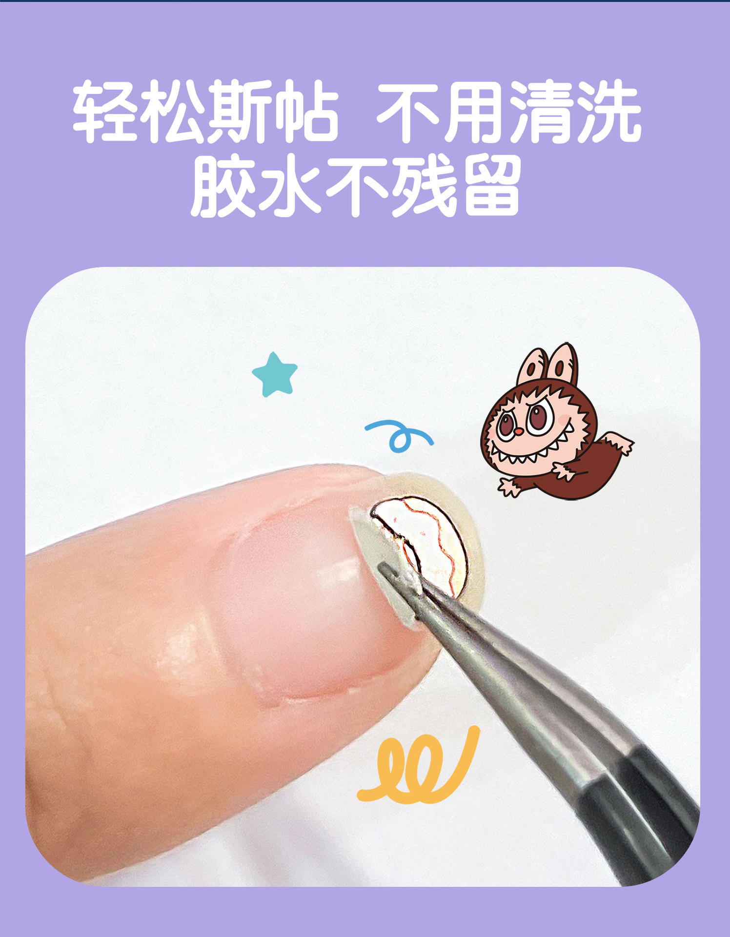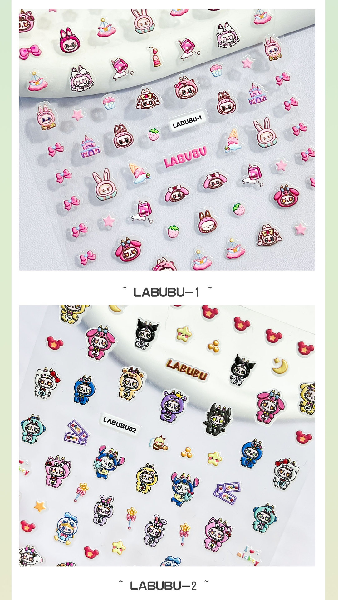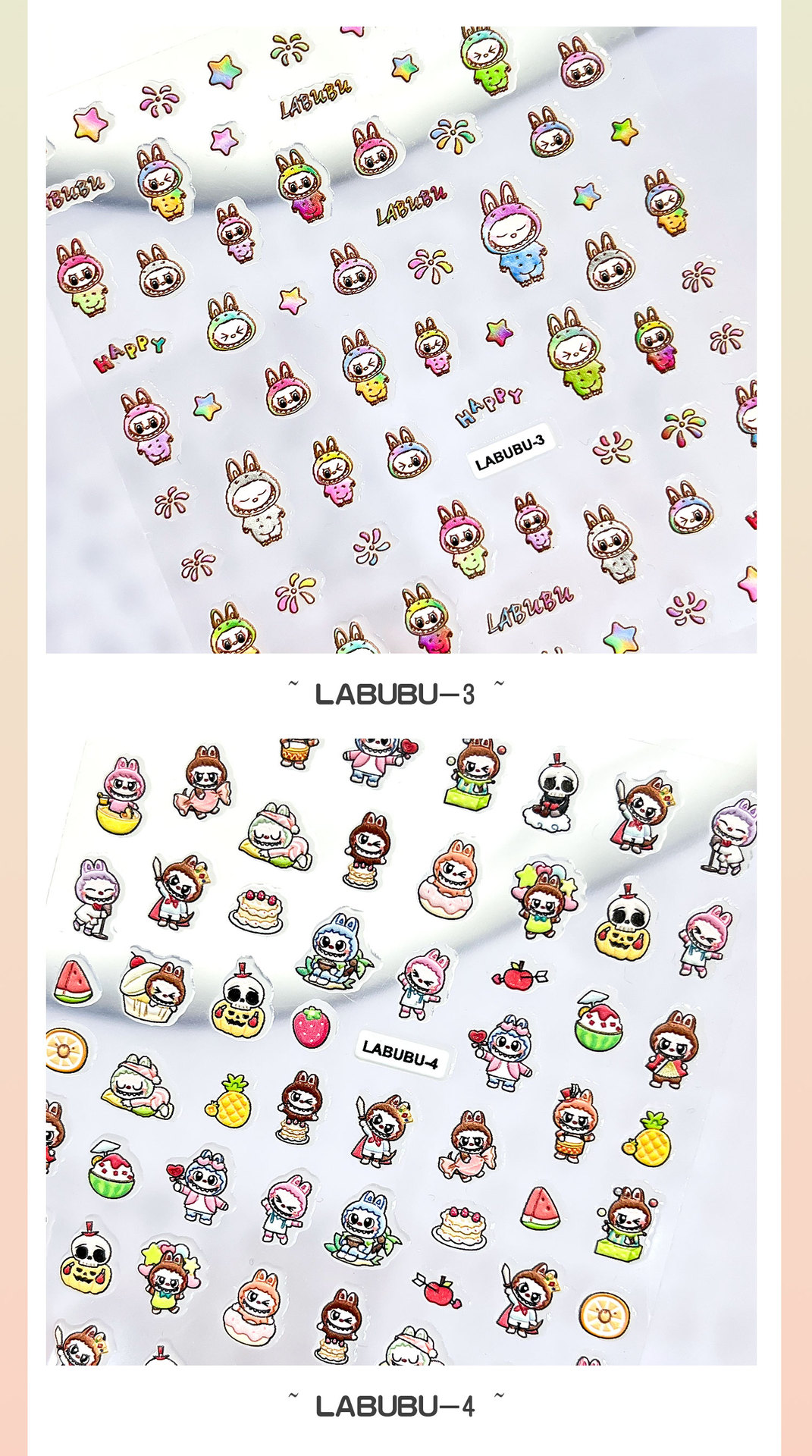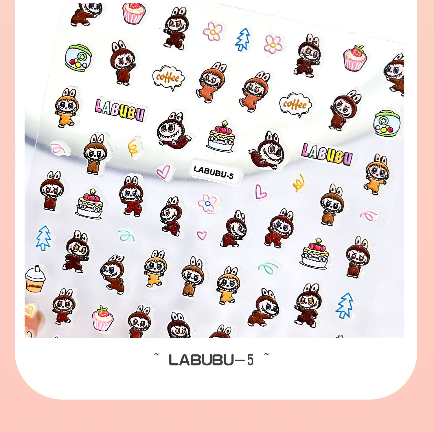 可爱拉布布浮雕立体美甲贴纸labubu指甲贴花小鼻嘎迷你卡通手账贴