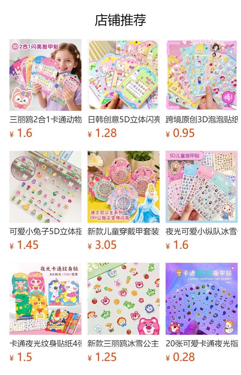 2025夜光指甲贴小鼻嘎贴纸儿童荧光女孩贴画美甲贴片卡通带背胶