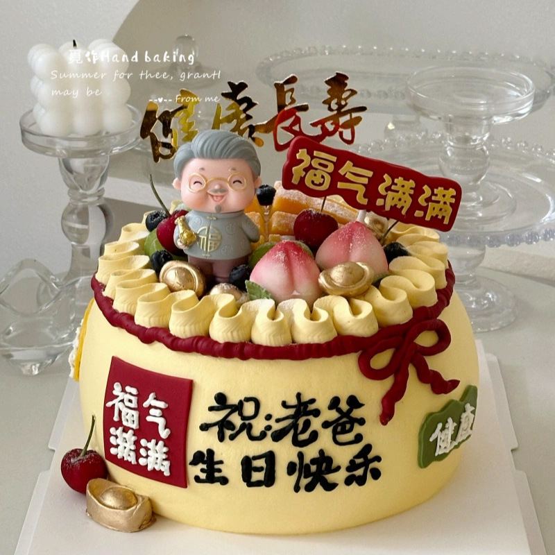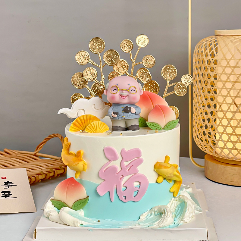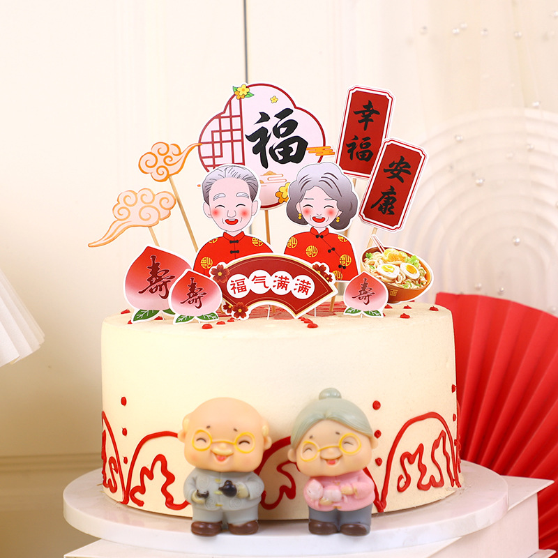 祝寿ケーキ装飾置物寿星公寿婆福如東海寿比南山老人年長者誕生日プラグイン