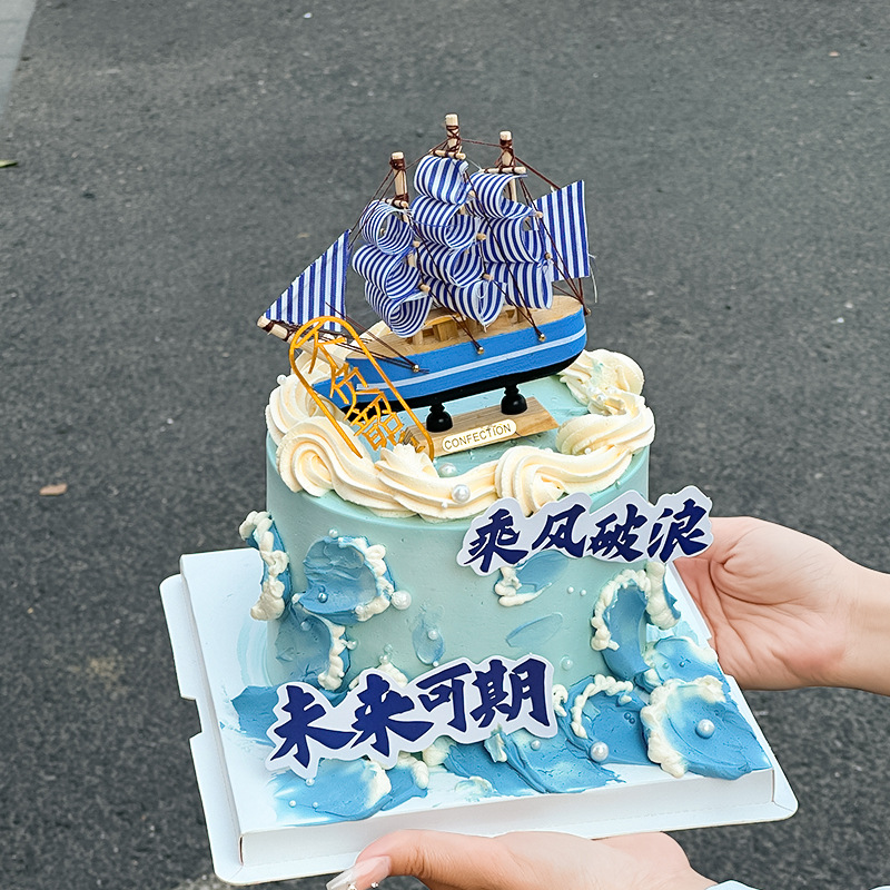 2025年卒業シーズン セーリングケーキデコレーション 風と波に乗って 未来は期待できる 学生卒業式 デコレーションプラグイン