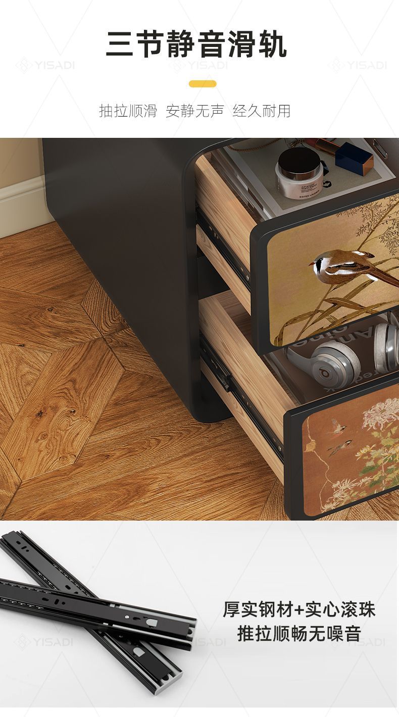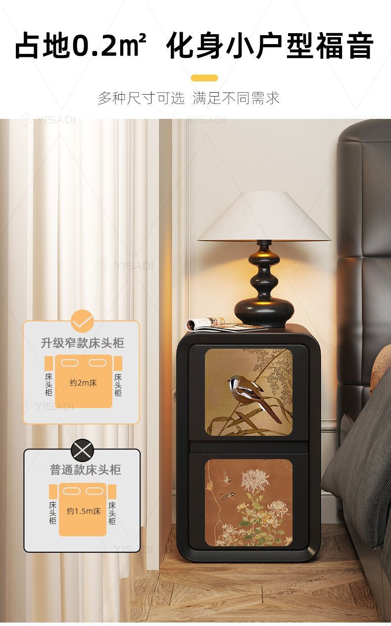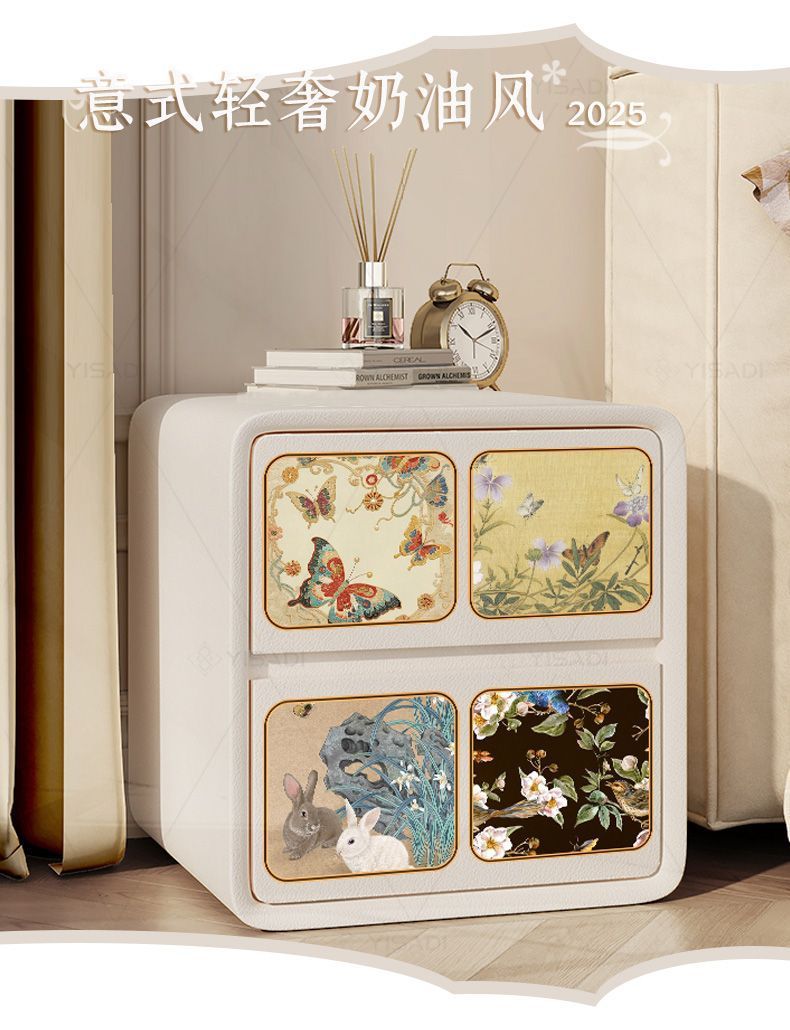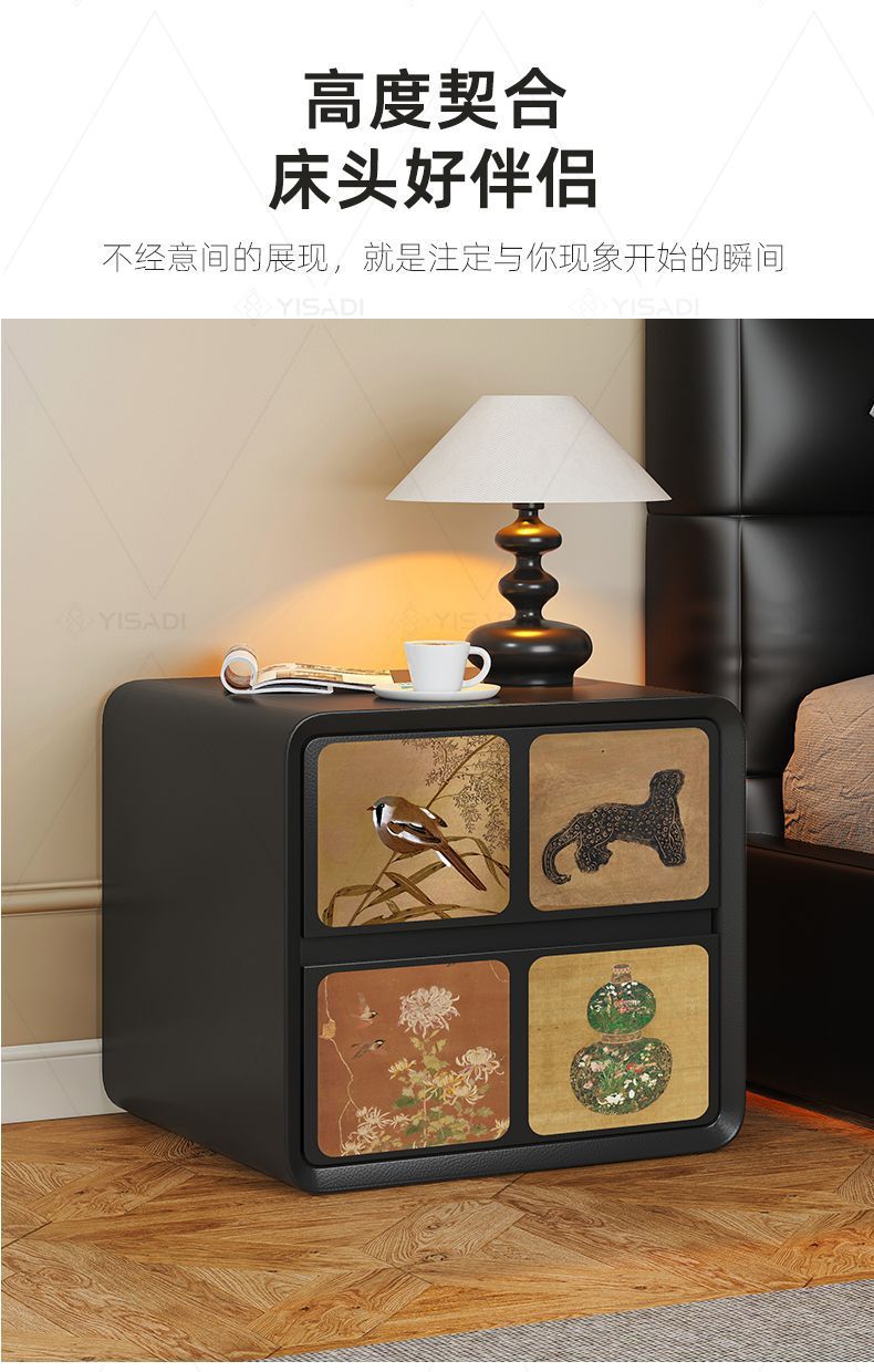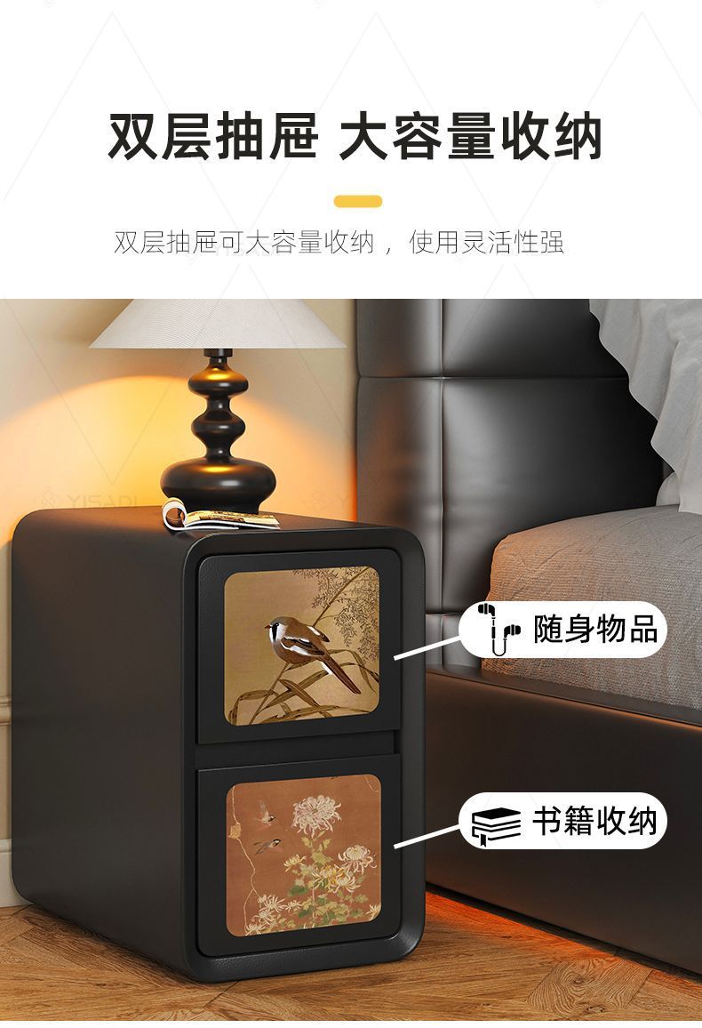 2025古风奶油新款床头柜家用轻奢小型卧室创意黑色大容量木