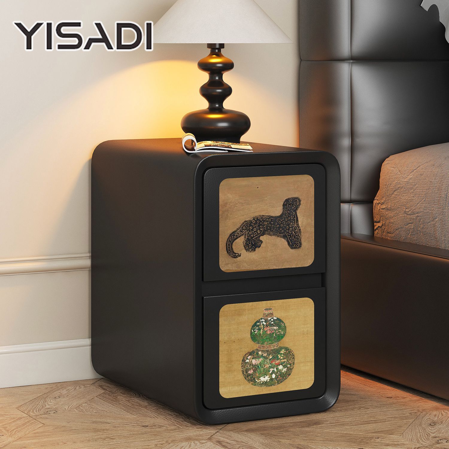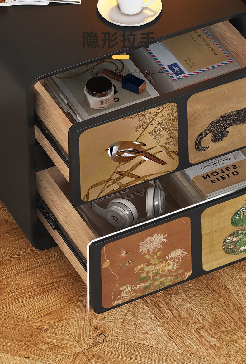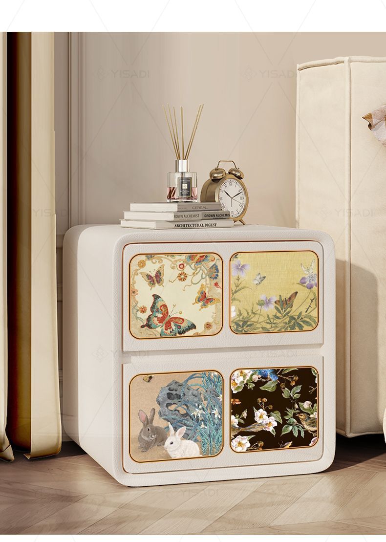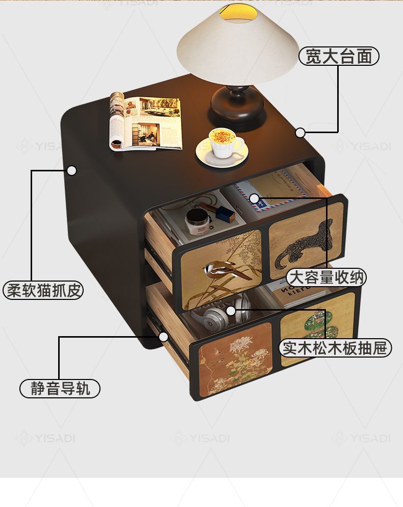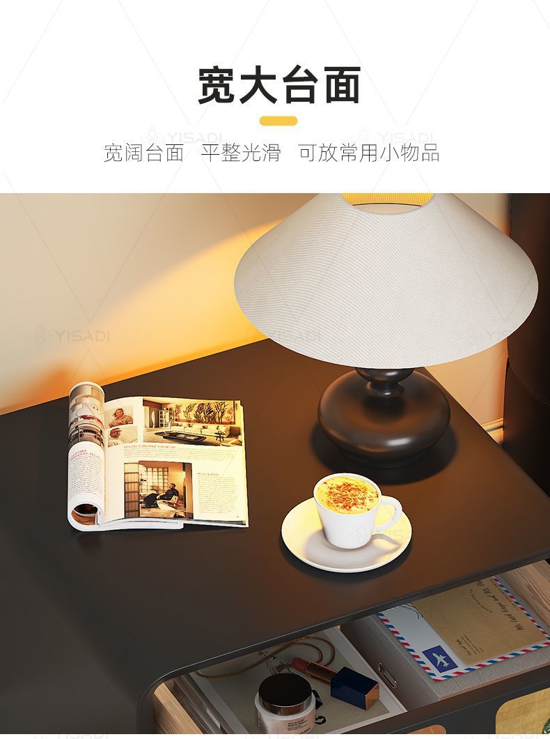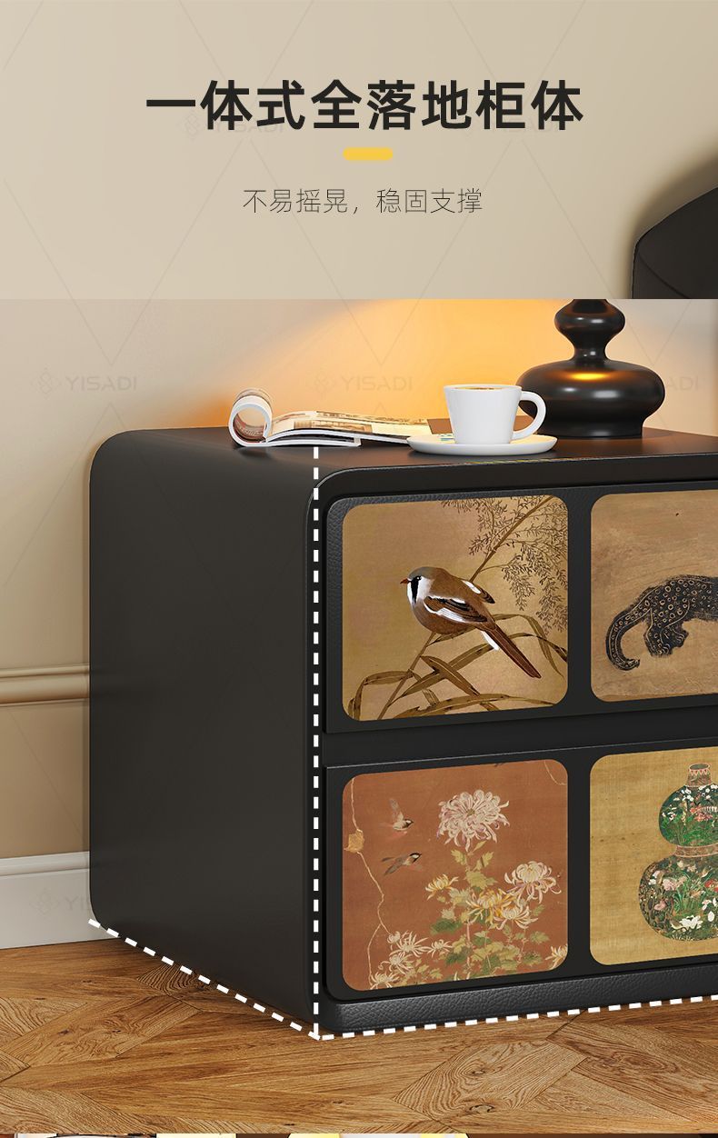 2025古风奶油新款床头柜家用轻奢小型卧室创意黑色大容量木