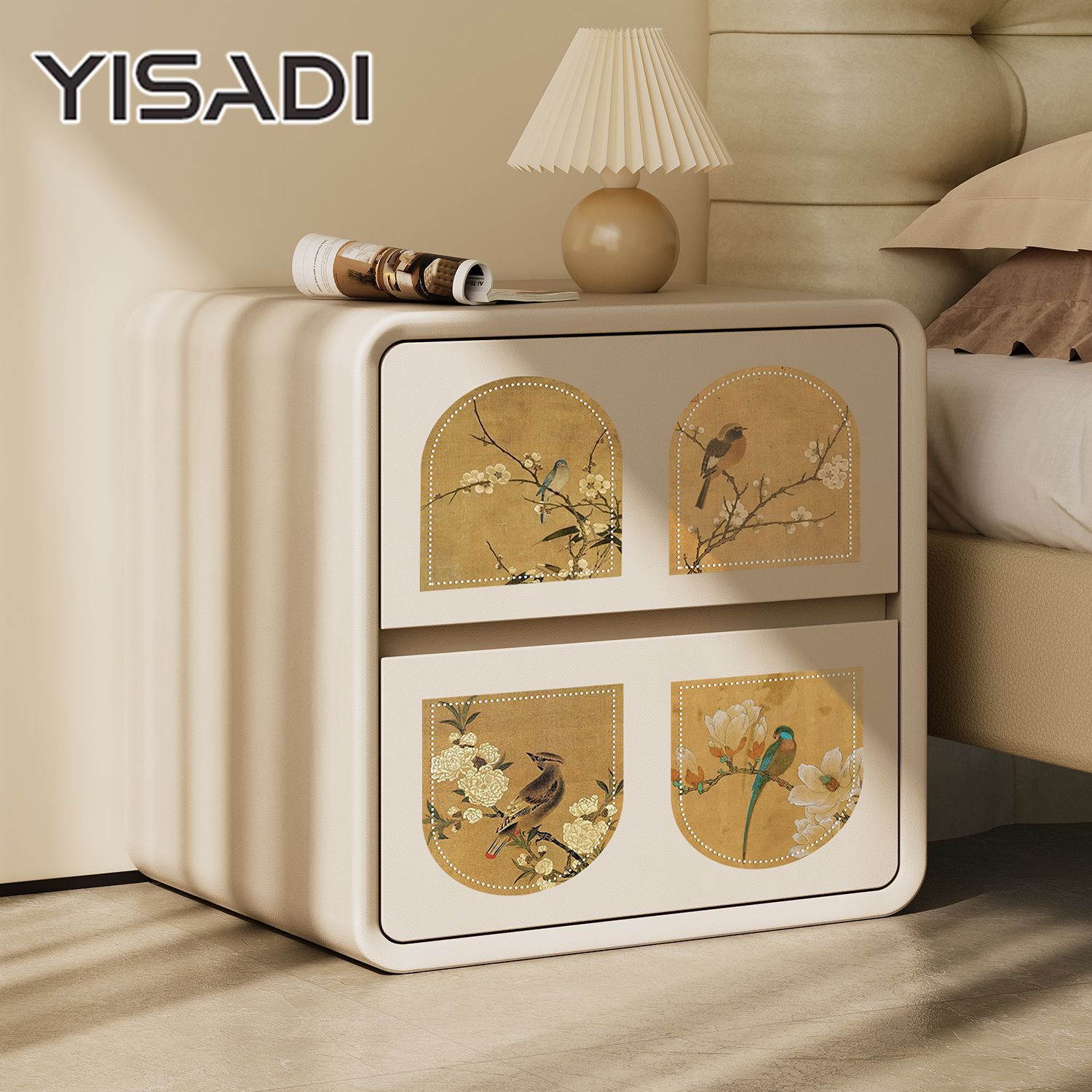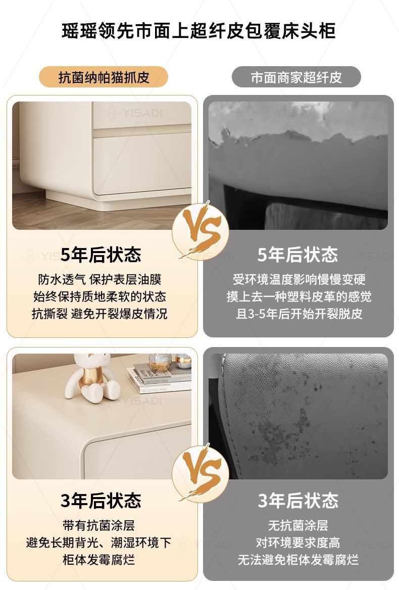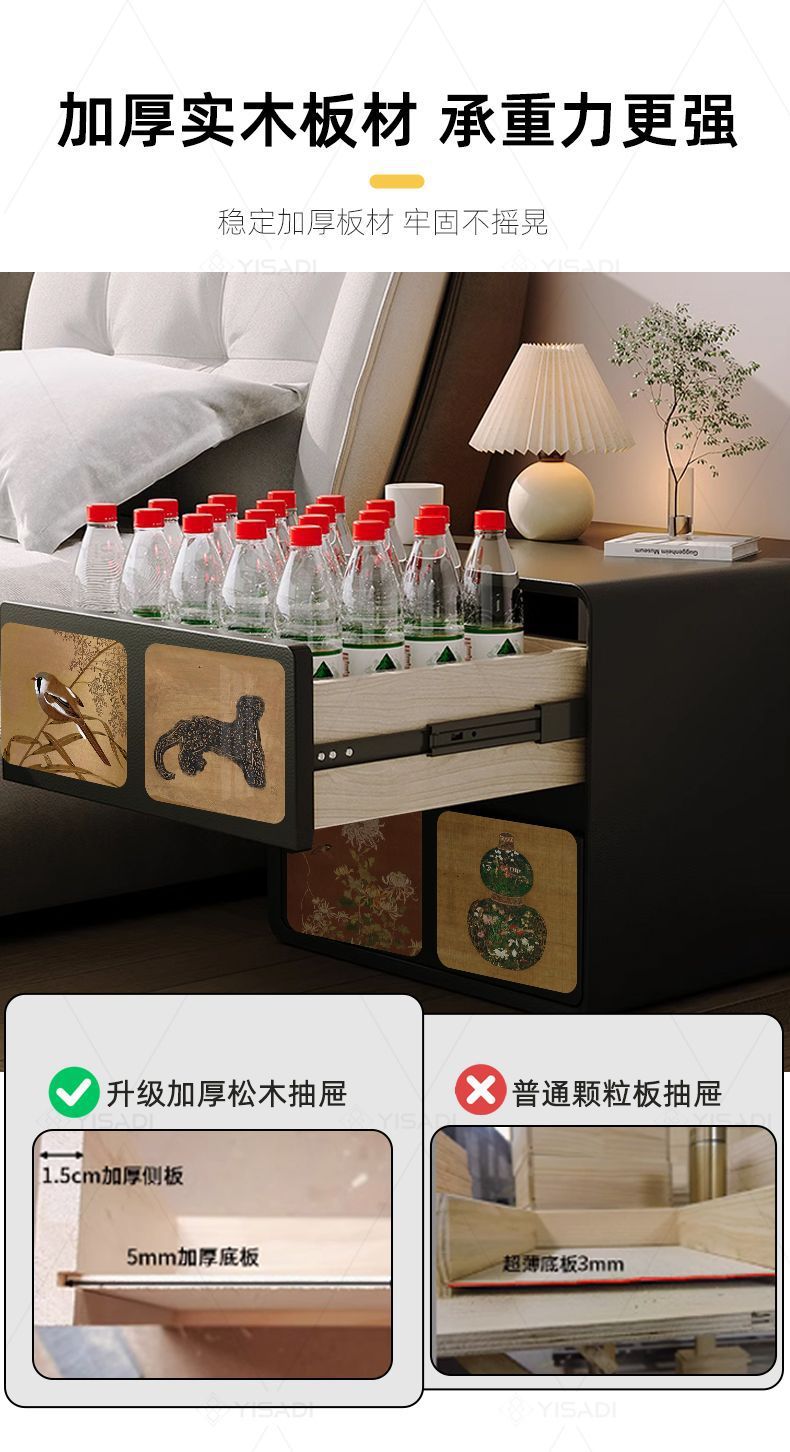クリームスタイルのベッドサイドテーブル、軽くて豪華な小さな無垢材のレザーの寝室の感触、取り付け不要のベッドサイドテーブル、ミニマリストの収納キャビネット