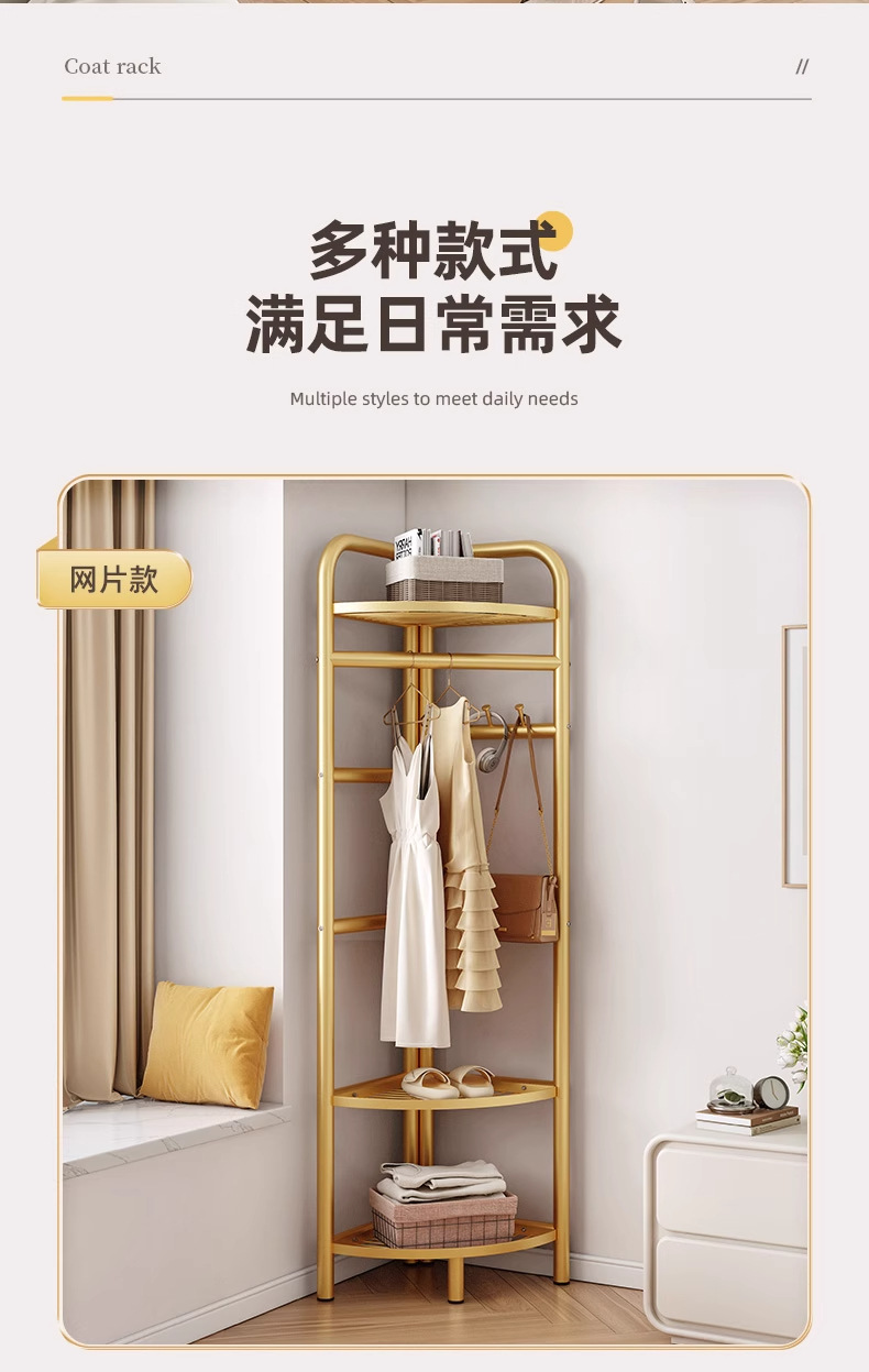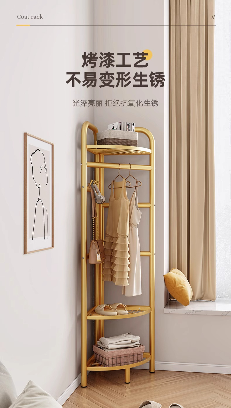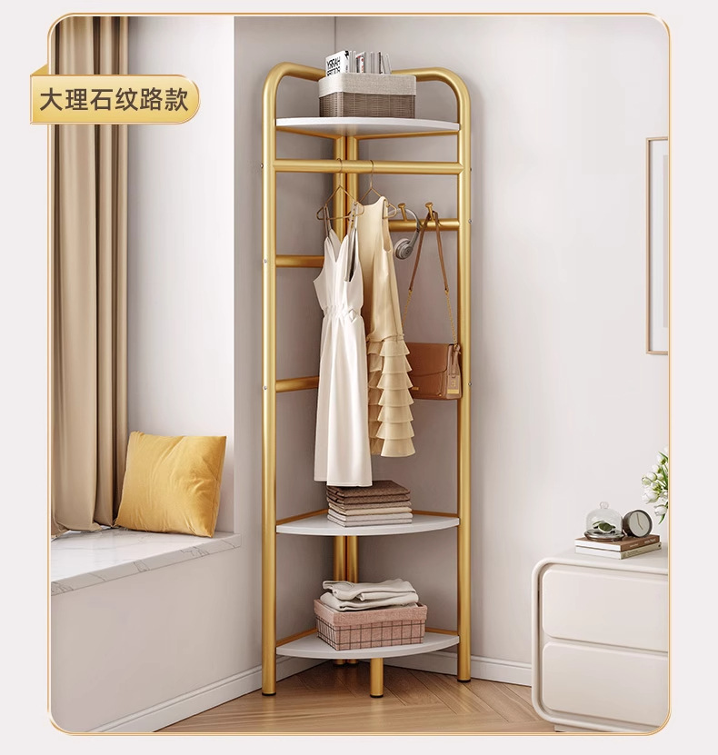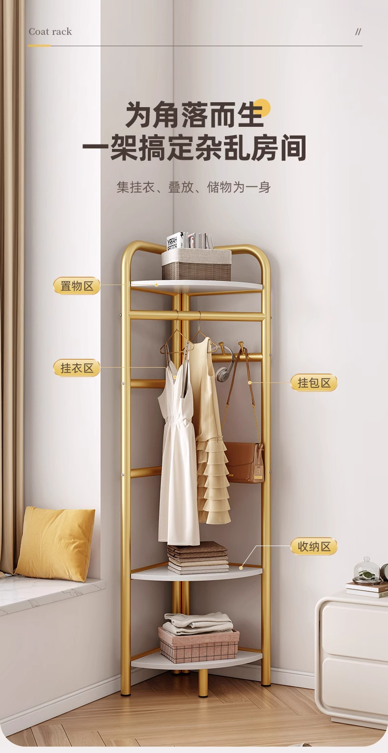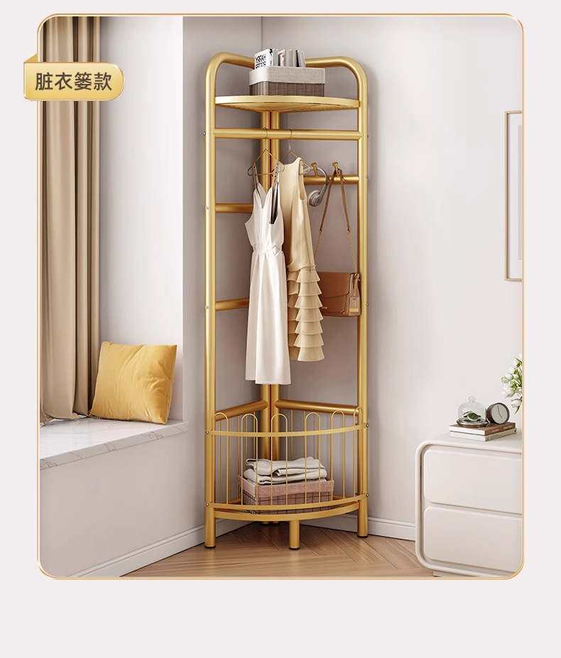 转角衣帽架卧室挂衣架简易三角收纳家用轻奢款落地置物架立式墙角