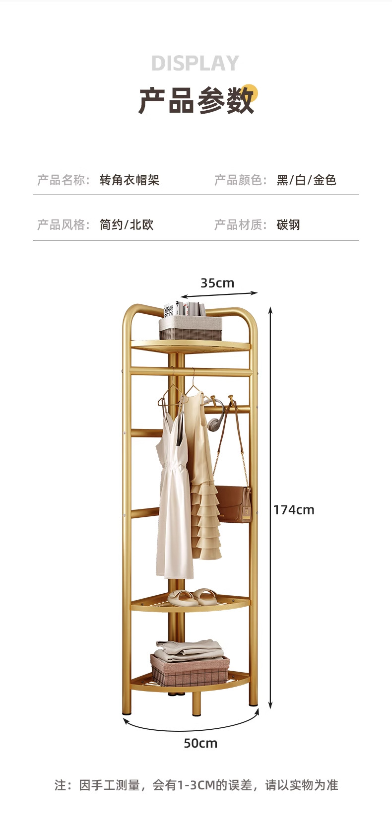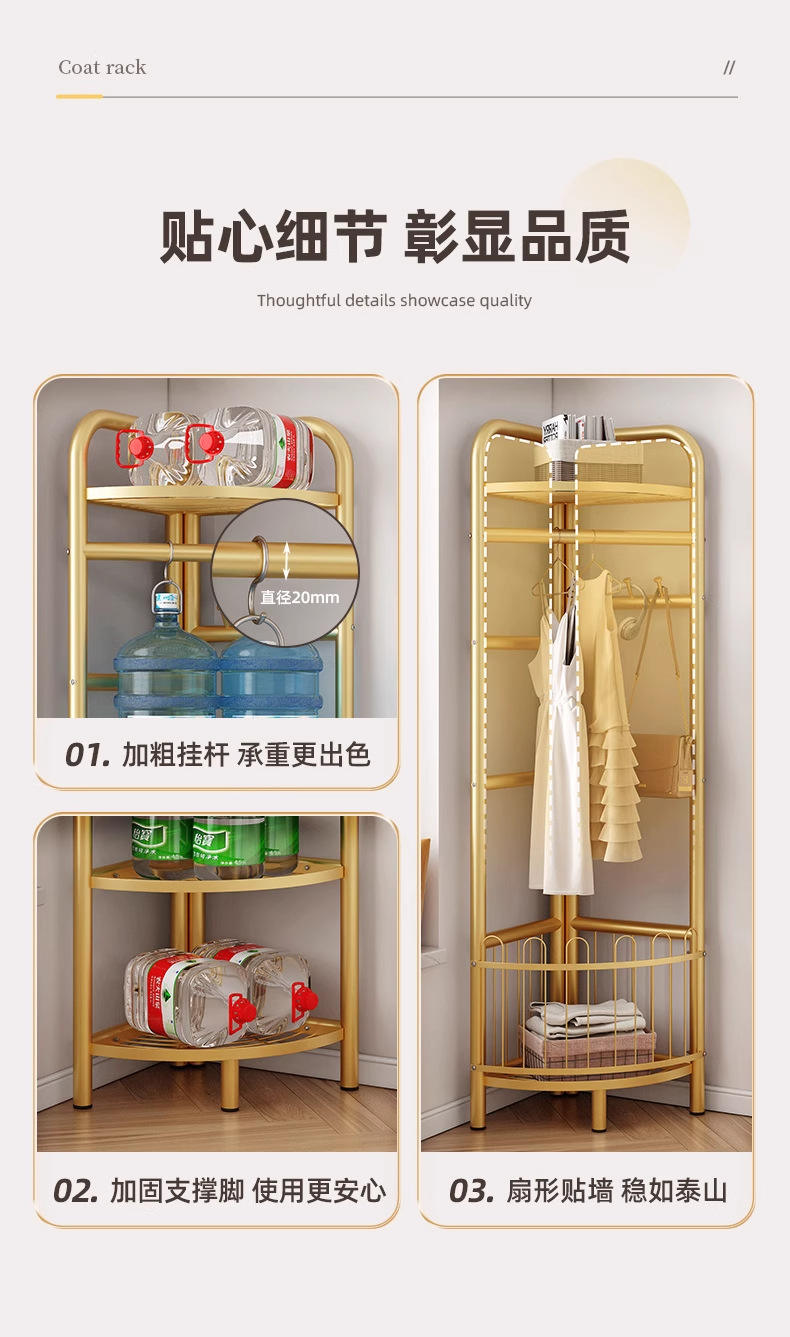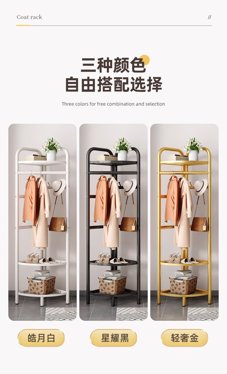 转角衣帽架落地家用室内收纳置物架墙角挂衣服架子房间卧室挂衣架