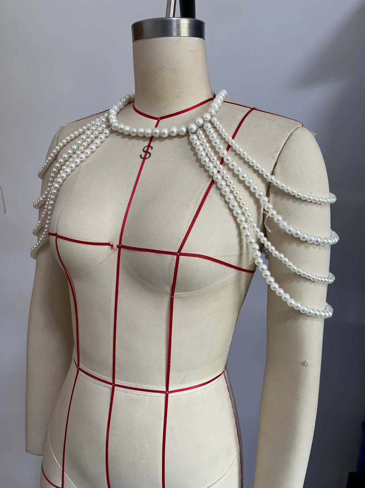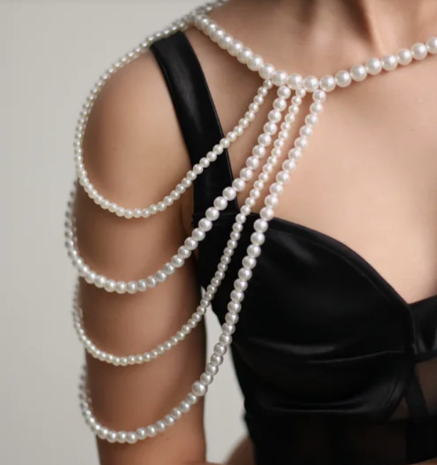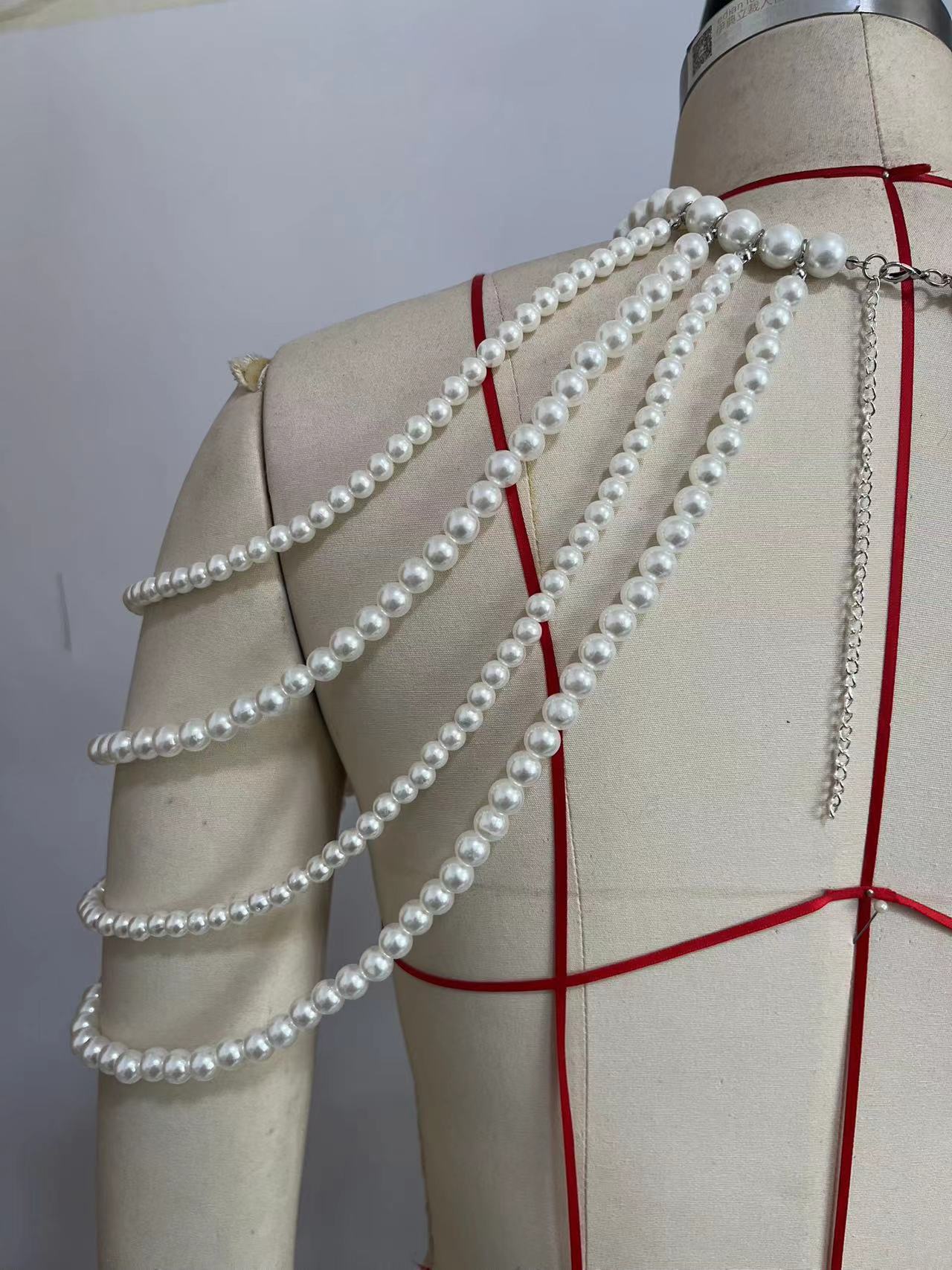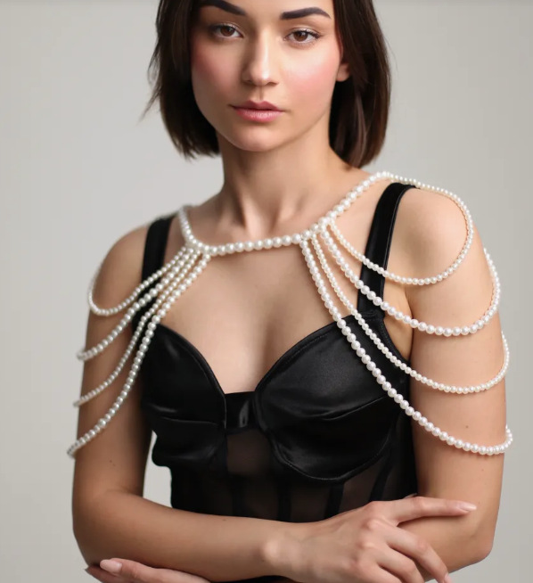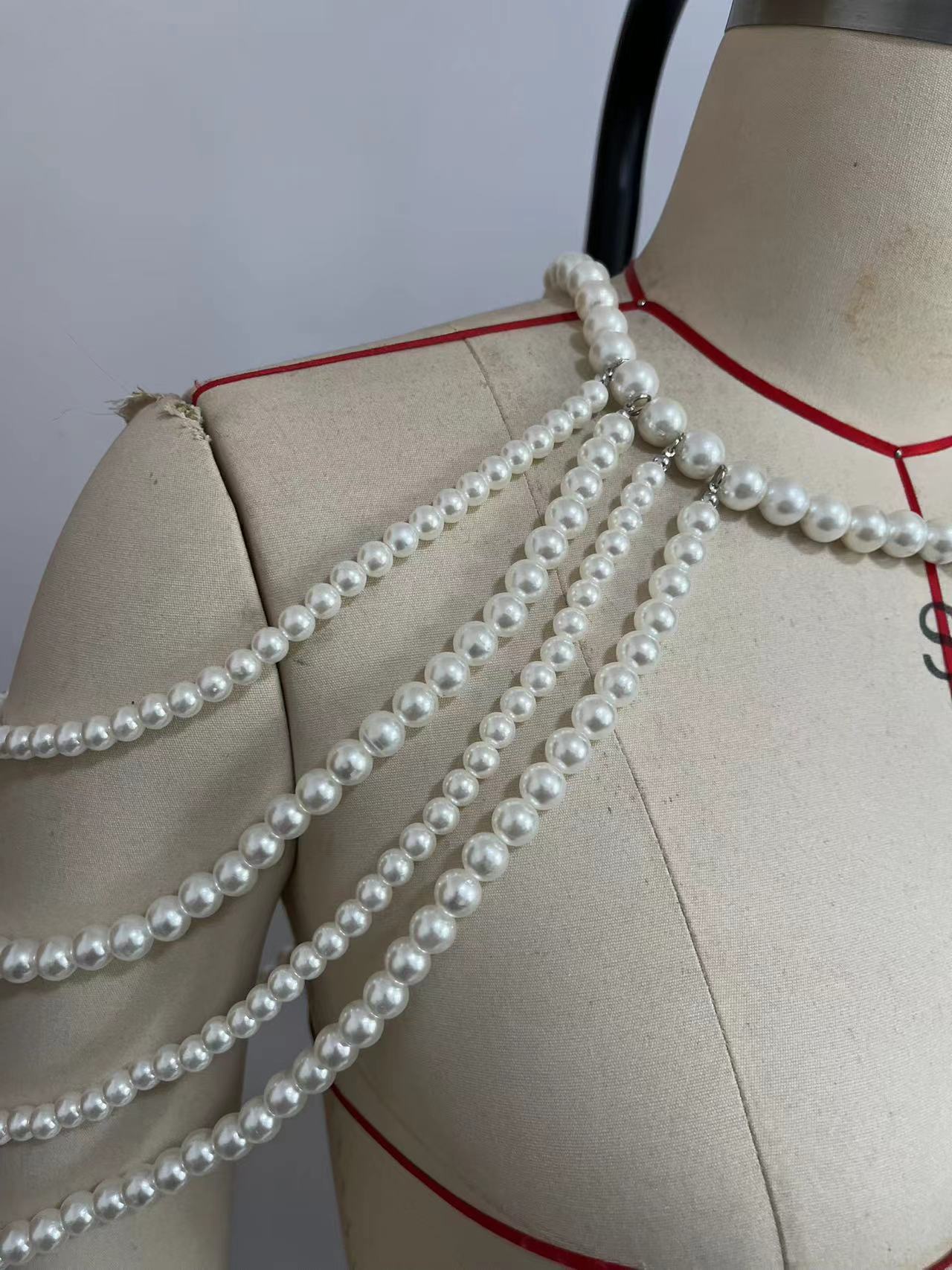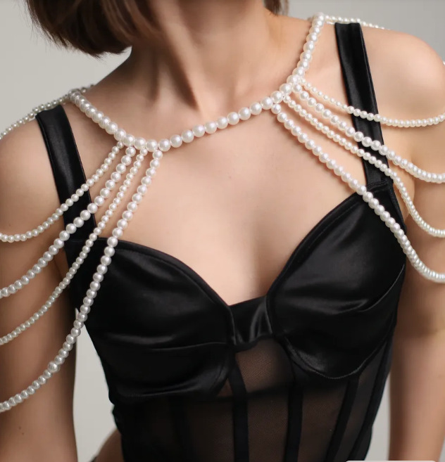 L6572Y ヨーロッパとアメリカのクロスボーダーファッションパールショルダーチェーン鎖骨チェーンブライダルウェディングアクセサリーネックレス多層ショルダーチェーンリアルショット