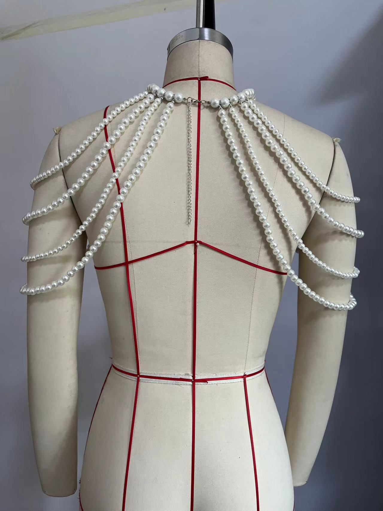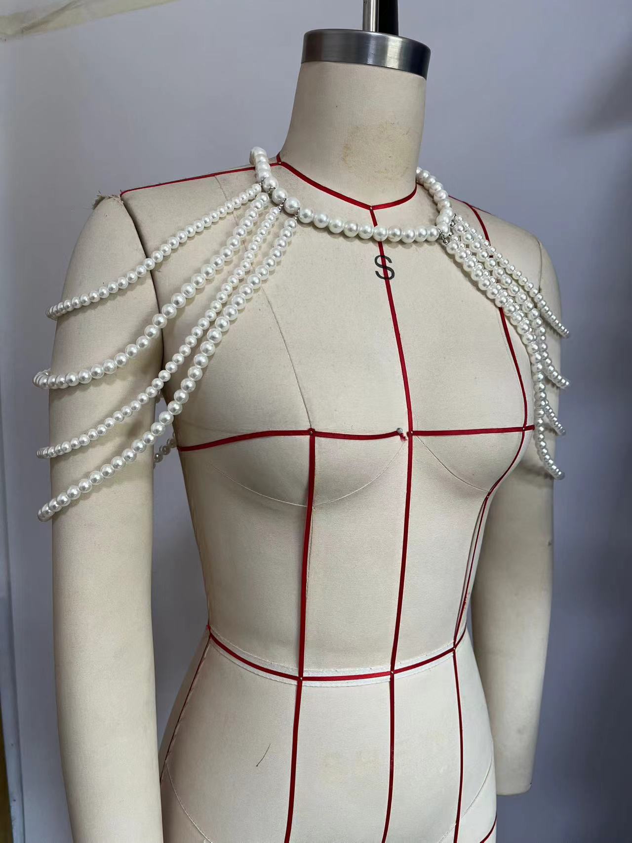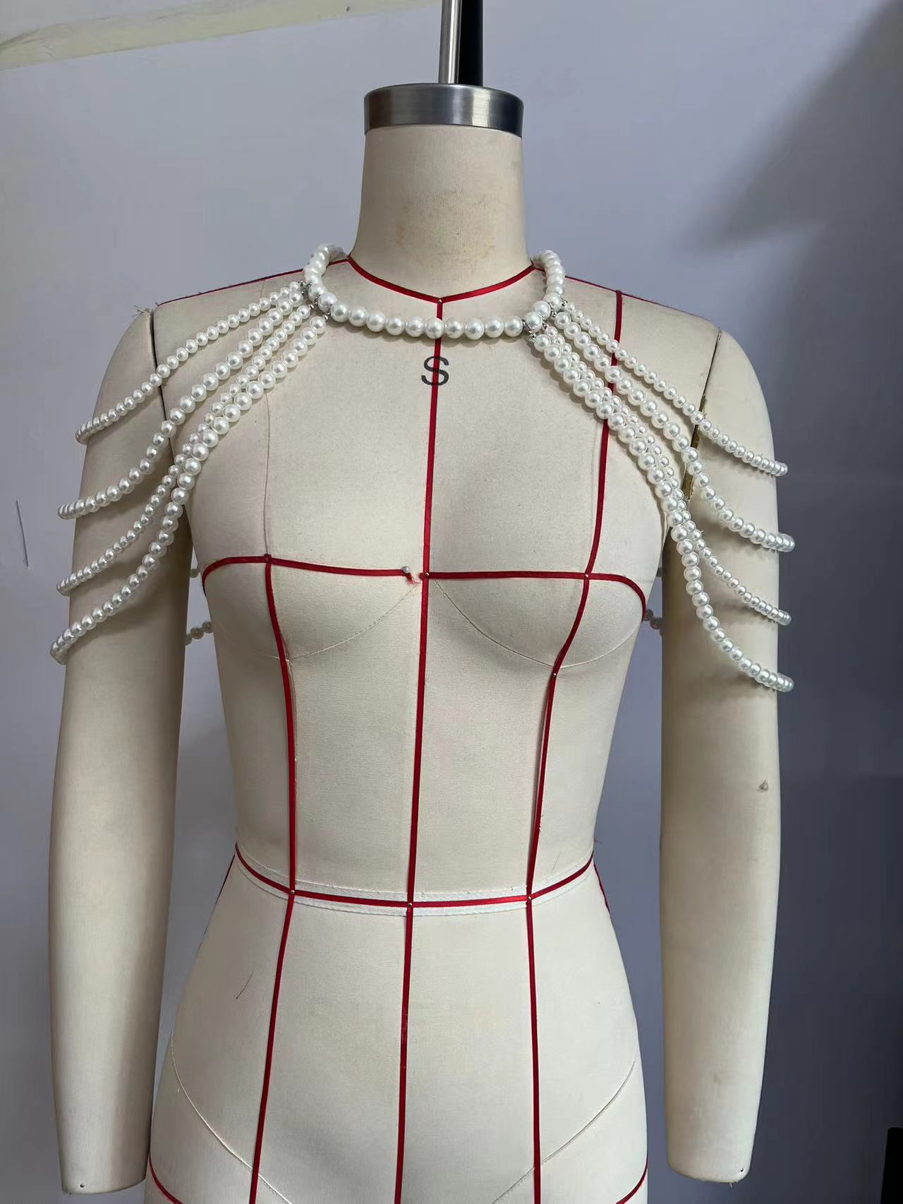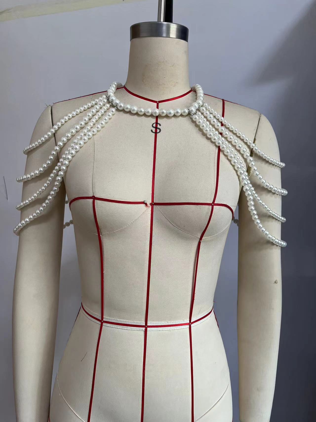 L6675Y ハンドメイドビーチブラジャーパールボディチェーンブラジャーフェスティバル衣装透明ダイヤモンドチェーントップ