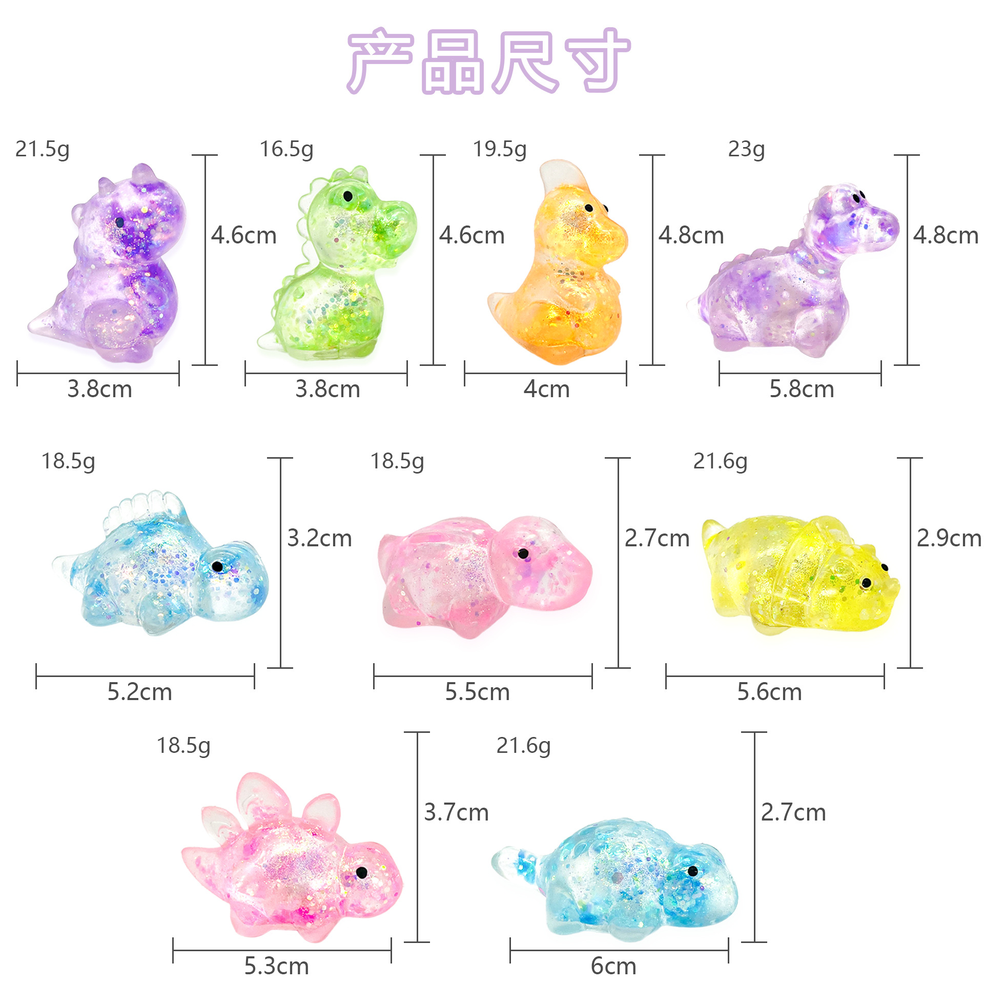 跨境创意麦芽糖小恐龙捏捏乐极光亮片小动物慢回弹麦芽糖减压玩具