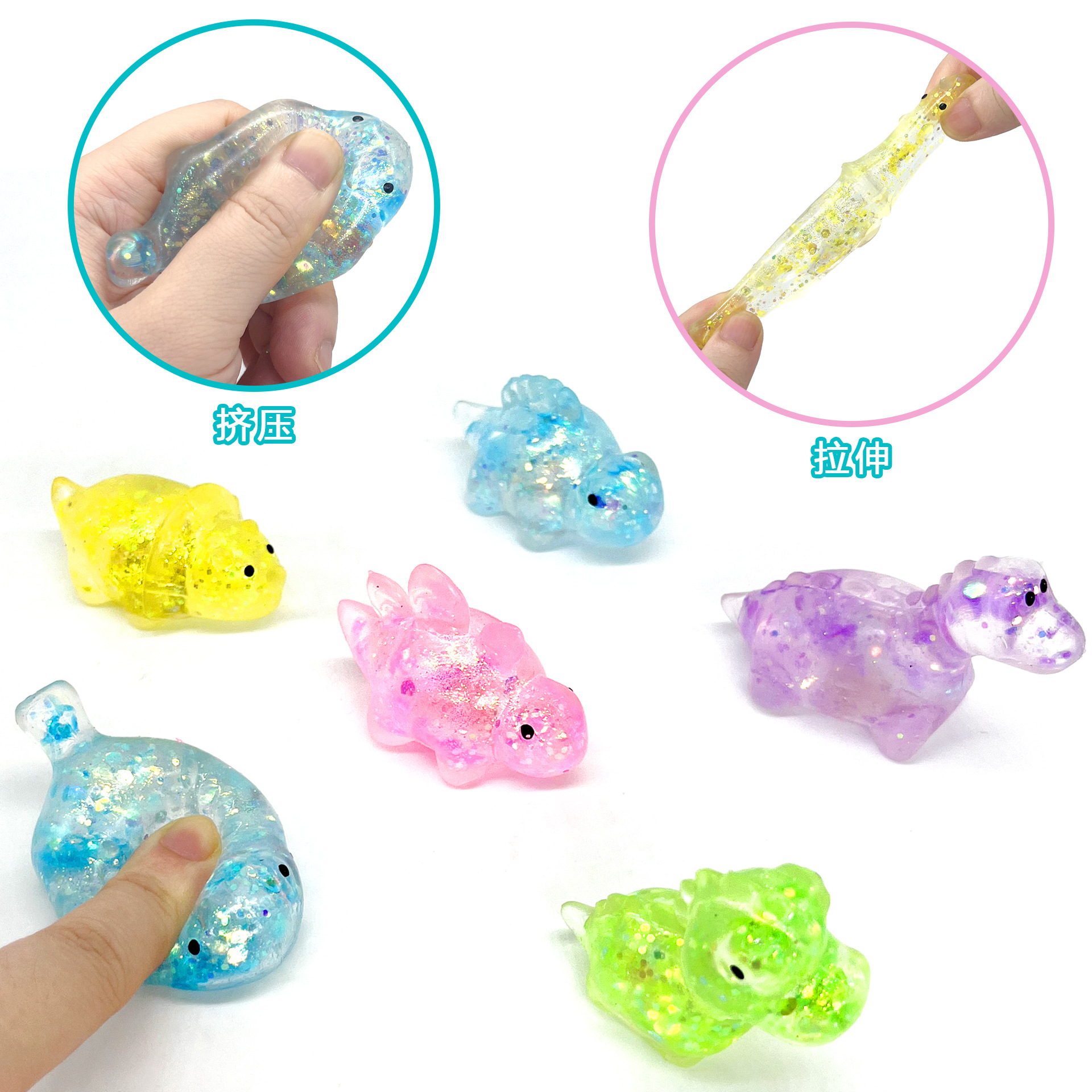 爆款麦芽糖小恐龙捏捏乐极光亮片小动物慢回弹麦芽糖减压玩具批发