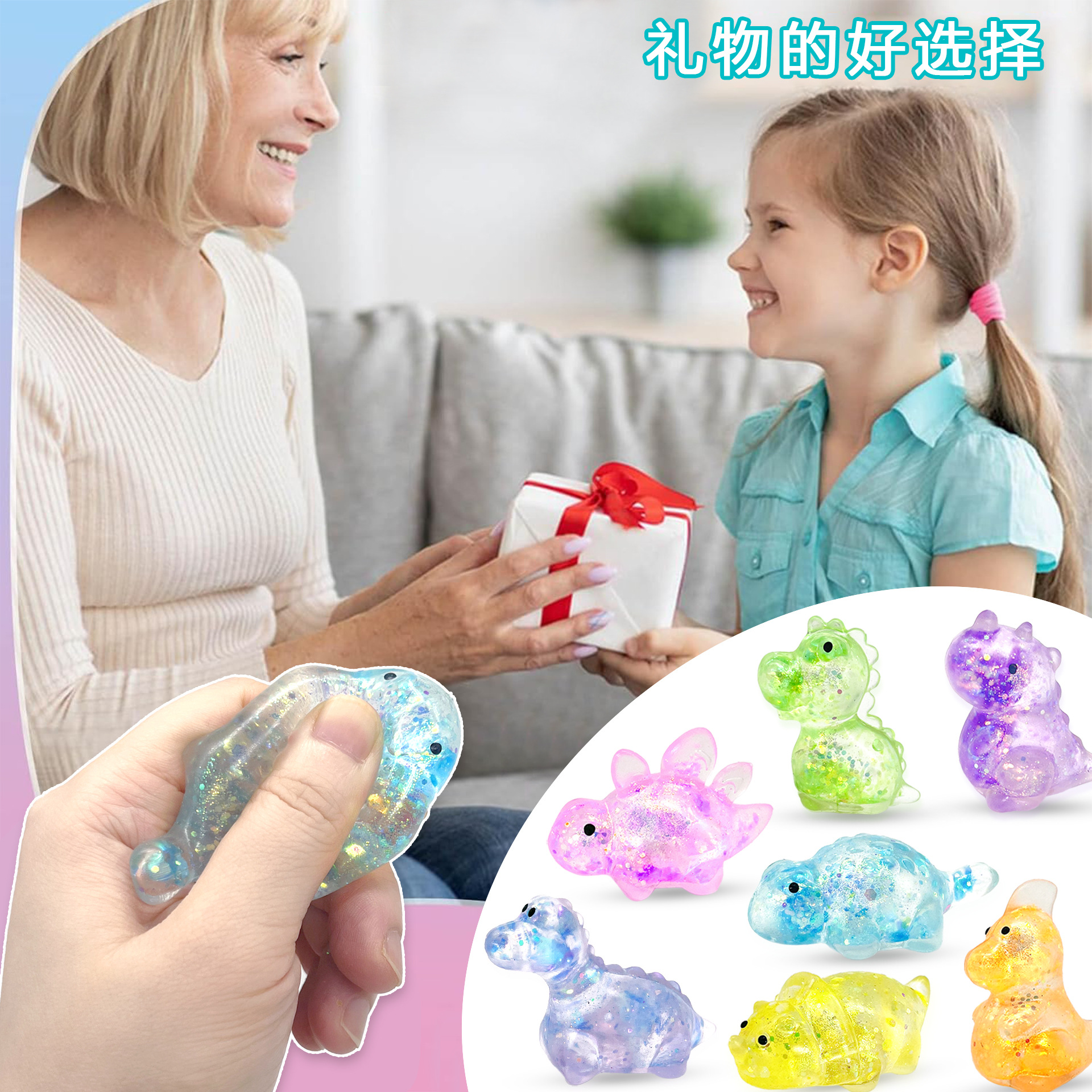 颜色 麦芽糖恐龙捏捏乐,混款23g