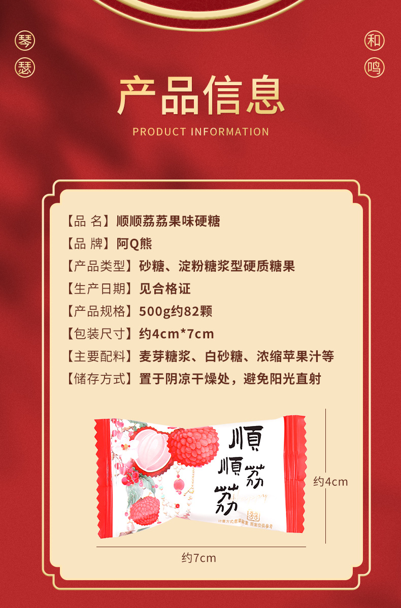 包装规格 顺顺荔荔果味硬糖500g【约82颗】