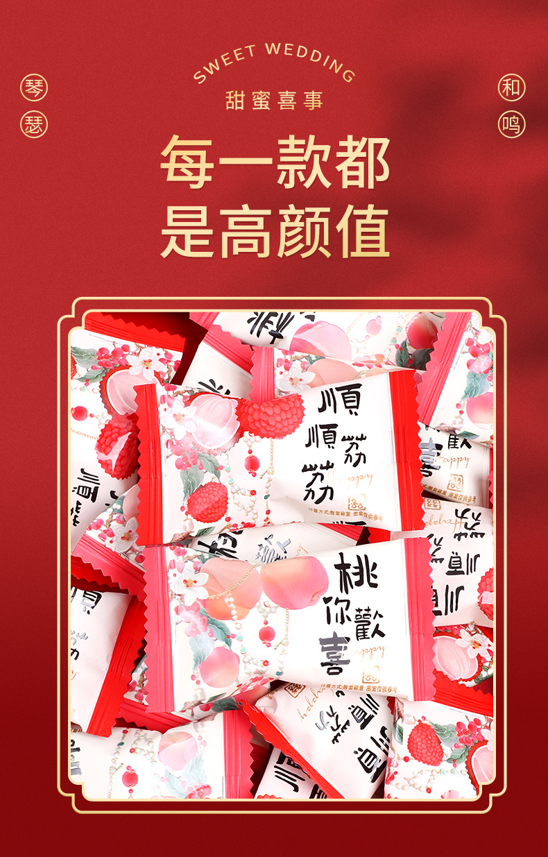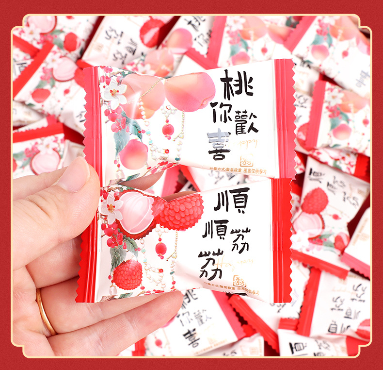 大喜日用マシュマロフルーツ味入りウェディングキャンディー、婚約キャンディー、卸売、満月祝い、新築祝い