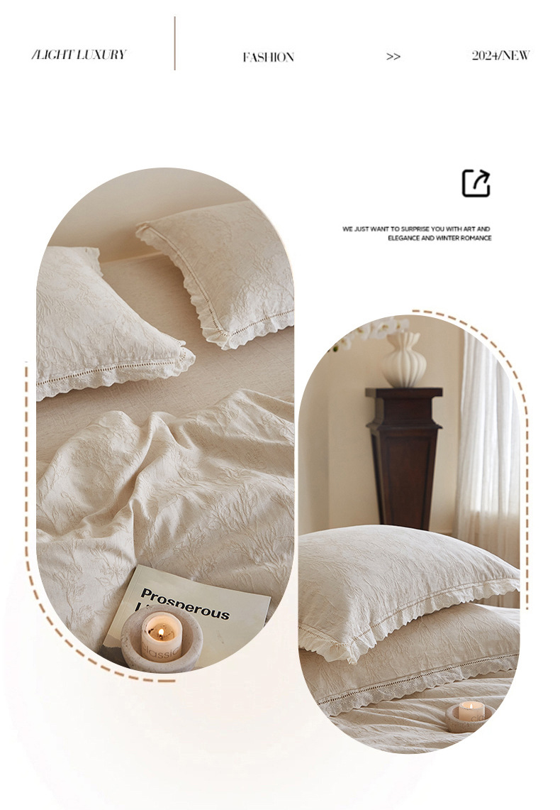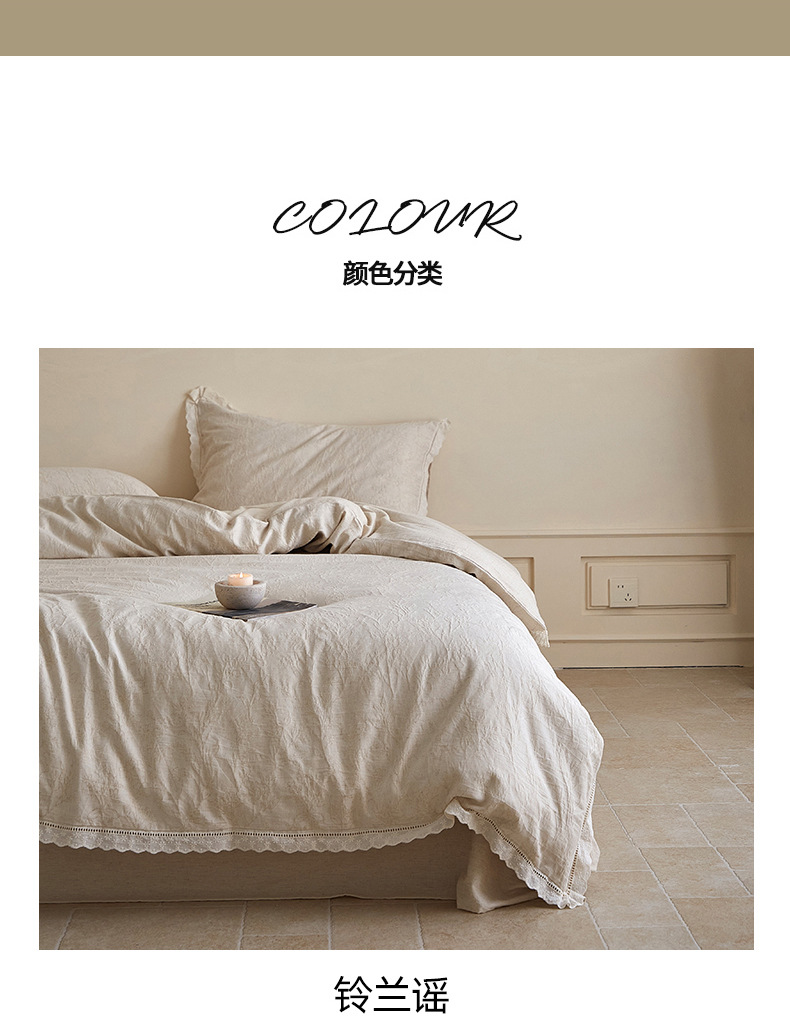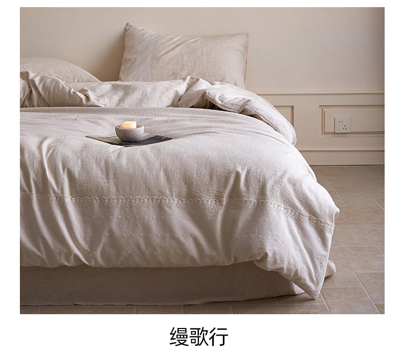 日式侘寂风高级民宿床品四件套A类色织提花蕾丝花边被套四季可用