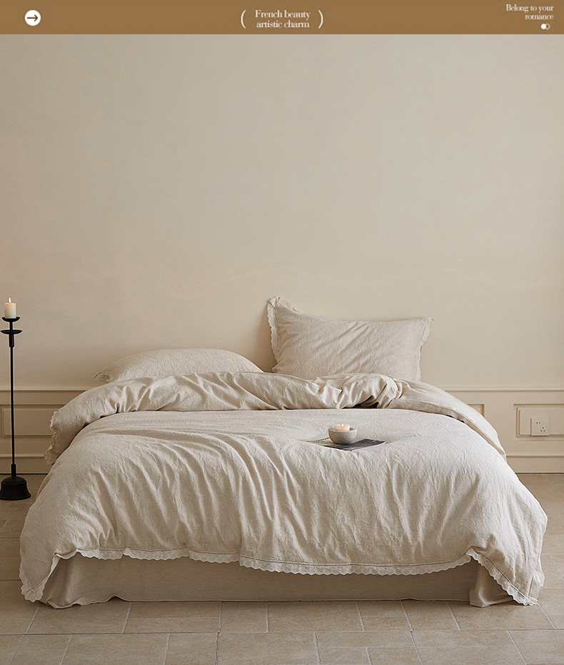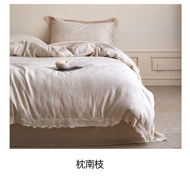 法式复古风20%亚麻80%纯棉床上四件套吸湿透气裸睡提花蕾丝边床品