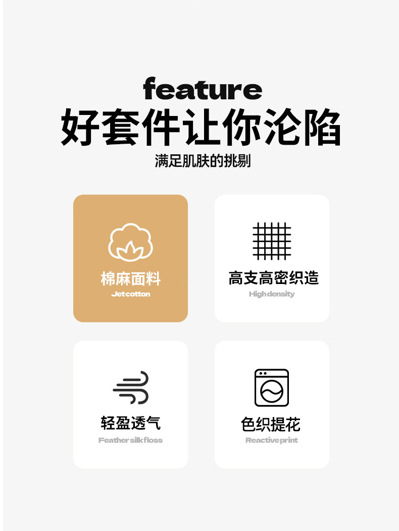 尺寸规格 1.2m床单款三件套:被套150*200cm床单180*245cm枕套48*74cm一只,1.5m床单款四件套:被套200*230cm床单245*250cm枕套48*74cm一对,1.8m床单款四件套:被套200*230cm床单245*250cm枕套48*74cm一对,2.0m床单款四件套:被套220*240cm床单245*270cm枕套48*74cm一对,1.2m床笠款三件套::被套150*200cm床笠120*200cm枕套48*74cm一只,1.5m床笠款四件套:被套200*230cm床笠150*200cm枕套48*74cm一对,1.8m床笠款四件套:被套200*230cm床笠180*200cm枕套48*74cm一对,2.0m床笠款四件套:被套220*240cm床笠180*200cm枕套48*74cm一对