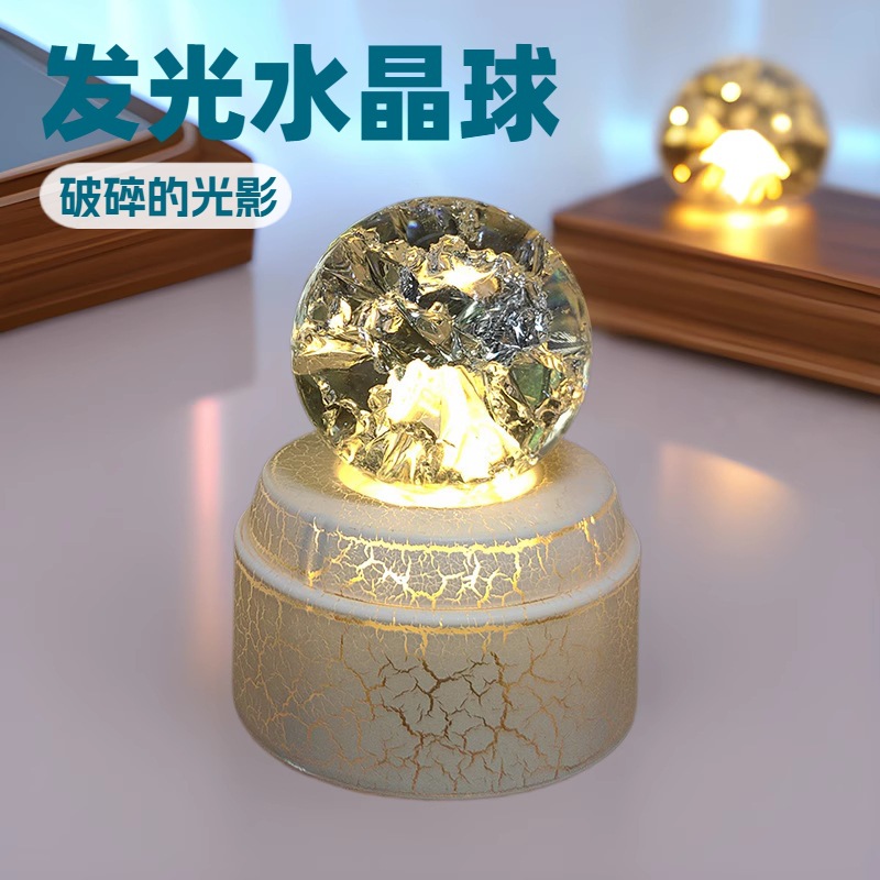 カラフルな氷ひび割れクリスタルボール回転発光ナイトライトガラス星空ガラスボールデスクトップ雰囲気ライトメーカー卸売