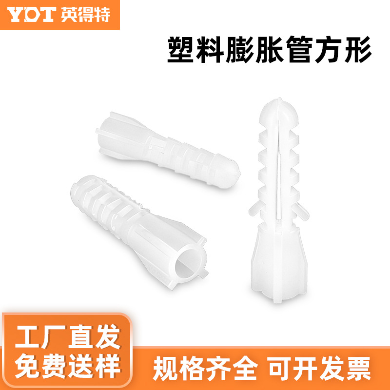 膨胀管膨胀螺丝方形胶塞白色胶粒带刺PE透明塑料方型膨胀管6/8mm