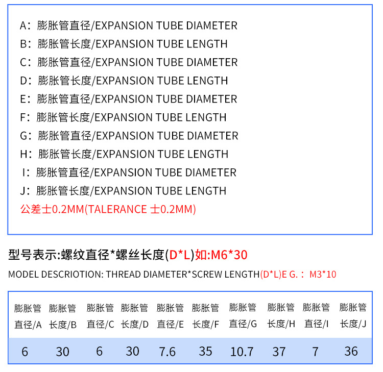 拡張チューブプラスチックプラスチック拡張チューブネジゴムプラグゴム粒子ボルト内部拡張ヤモリ