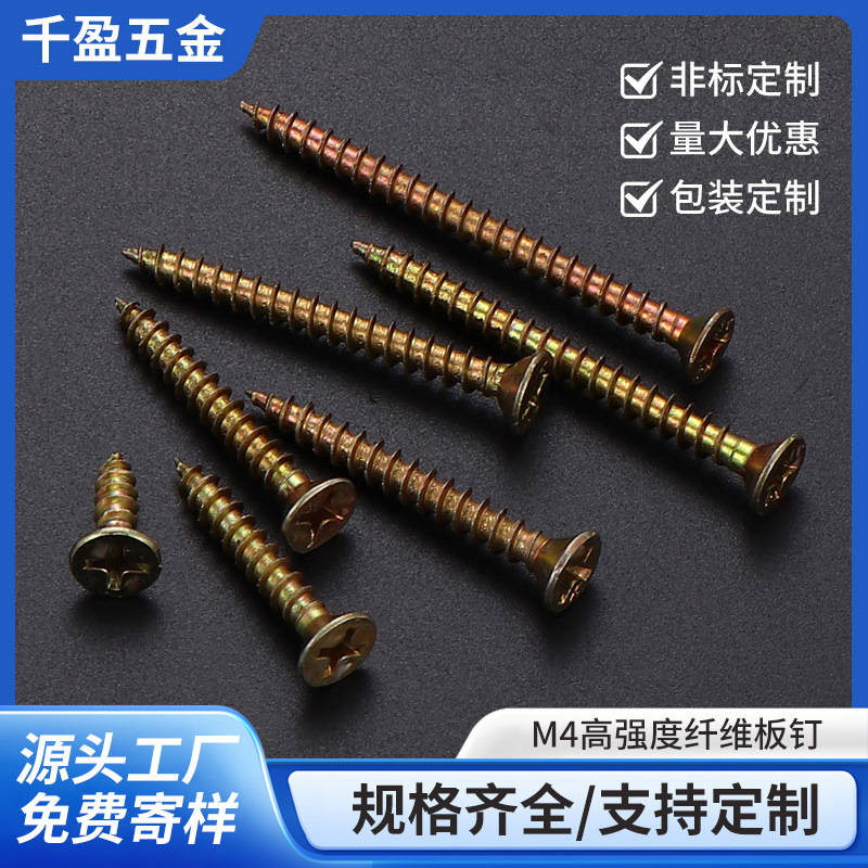 M4高強度繊維板用ネジ、カラー亜鉛メッキ十字皿頭セルフタッピングネジ、木ネジ、木工家具壁板用ネジ