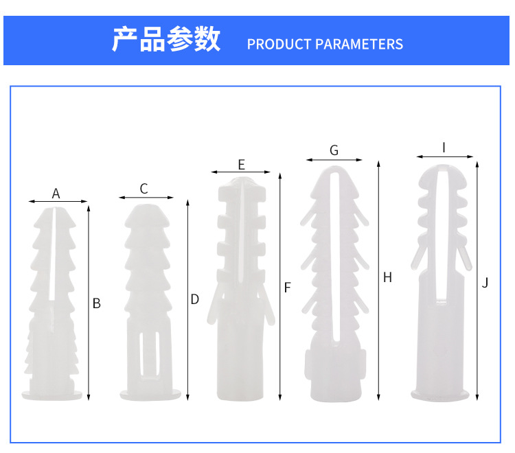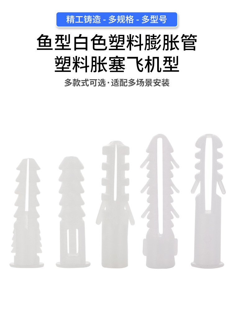 Peプラスチック白色膨張管5*25*30*7*35*40*50*60mm魚尾型固定