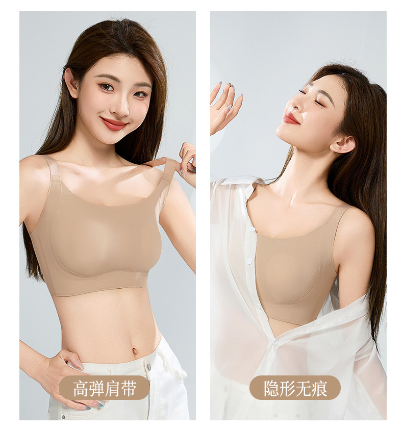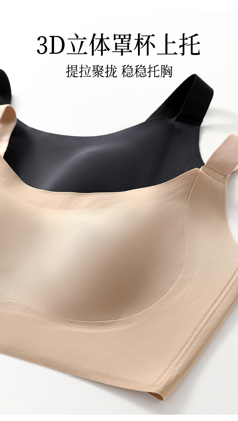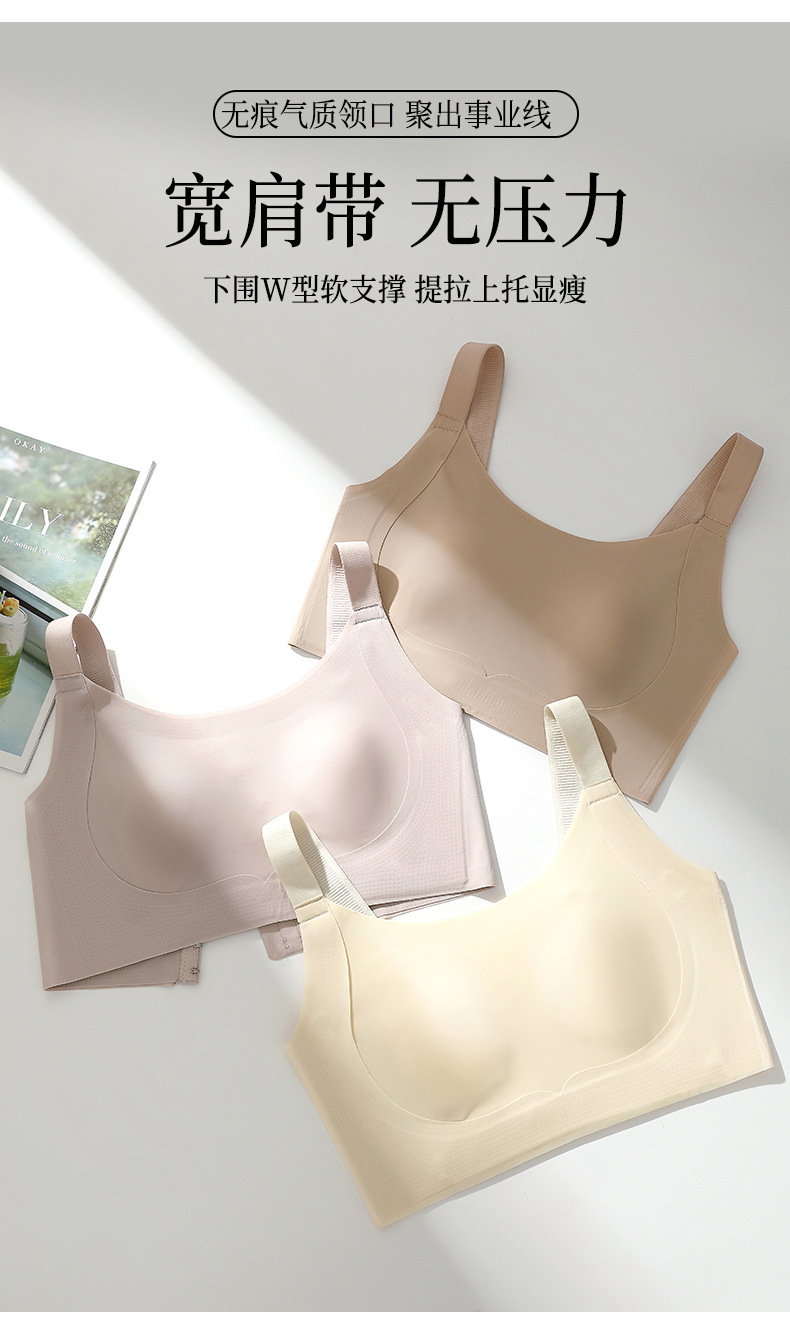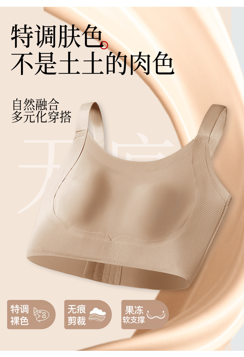 粉底液软支撑宽肩带文胸女果冻胶条无痕裸感舒适运动大码内衣聚拢