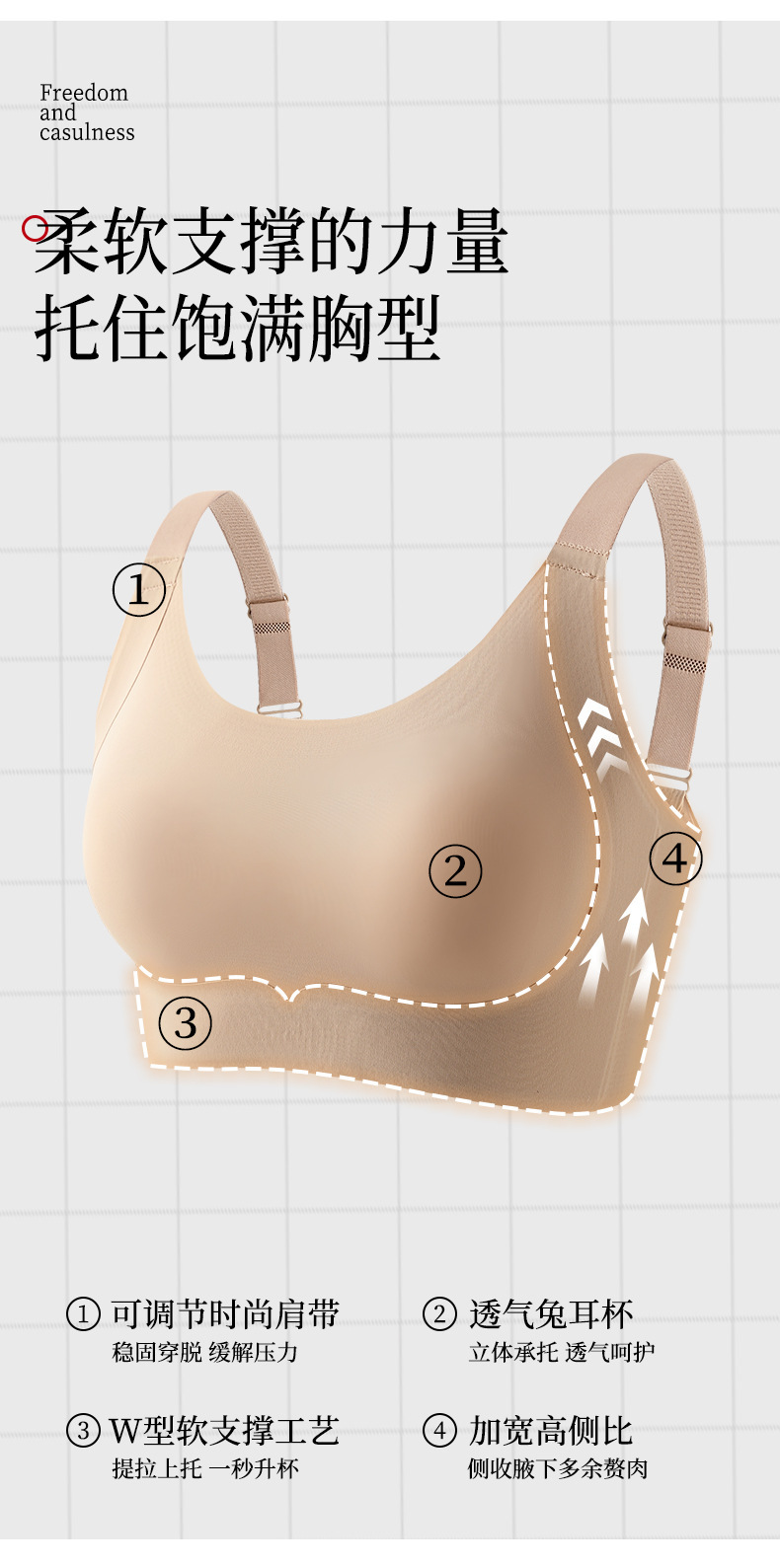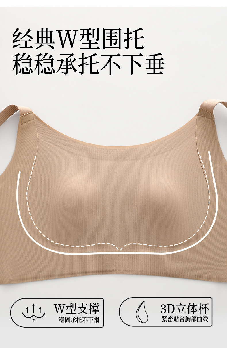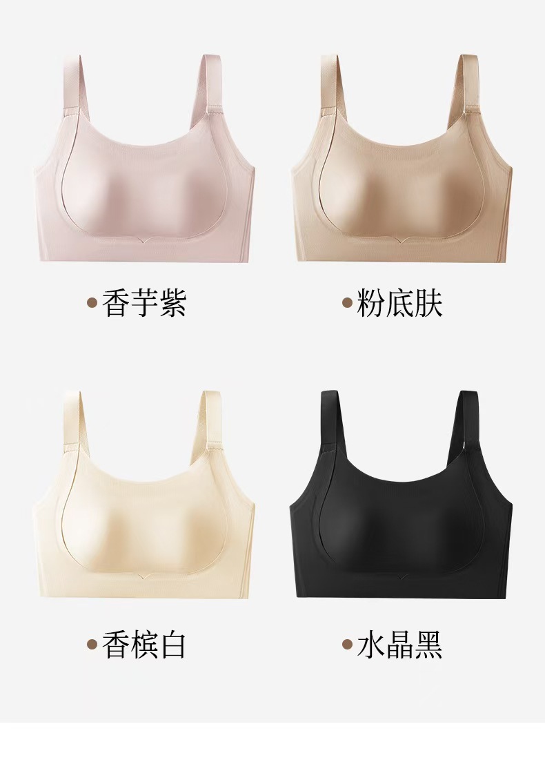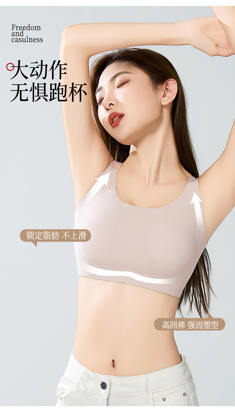 粉底液软支撑宽肩带文胸女果冻胶条无痕裸感舒适运动大码内衣聚拢
