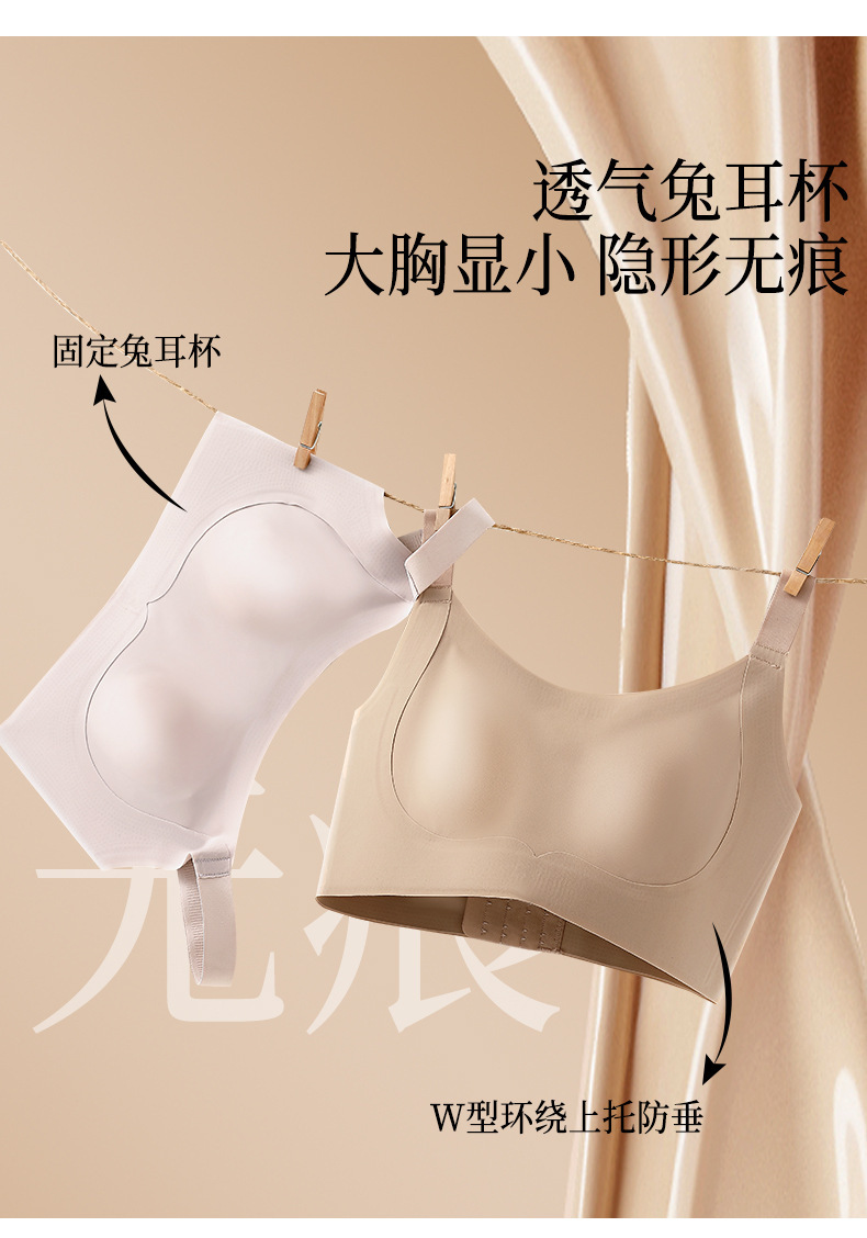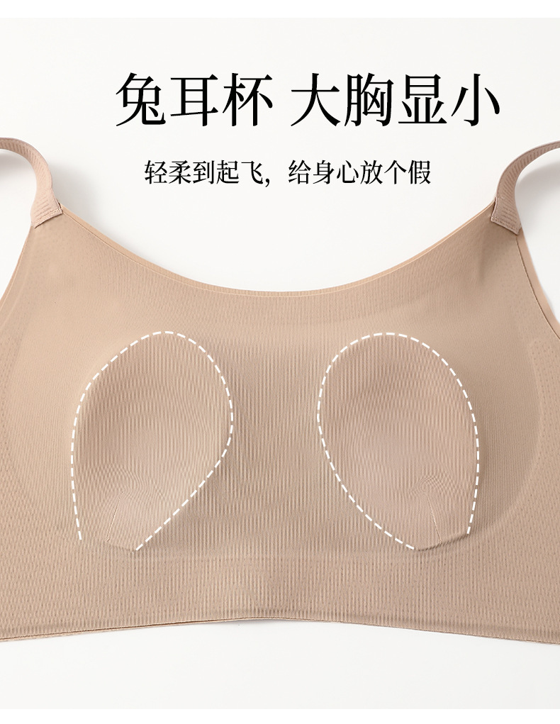 ウサギ耳カップインビジブルリキッドファンデーション下着女性の大きな胸が小さく見える副胸なしリムブラジャー通気性薄型大きいサイズ