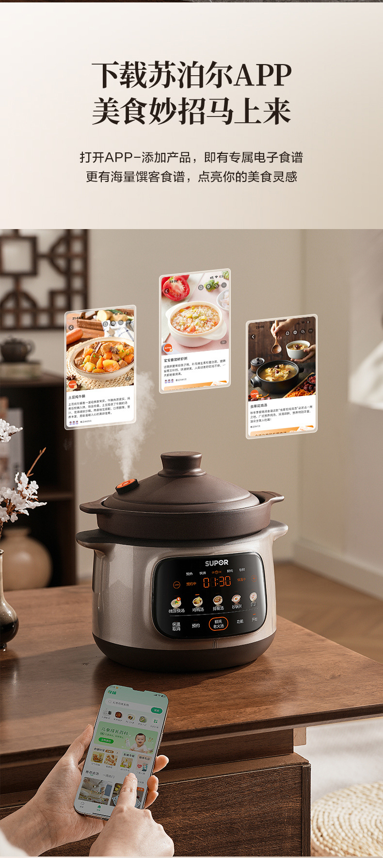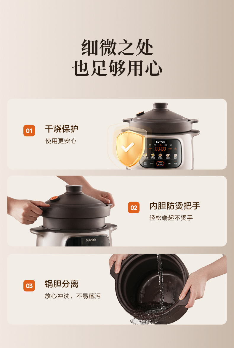 苏泊尔电炖锅煲汤锅家用自动炽陶砂锅炖汤电砂锅电炖盅陶瓷新款