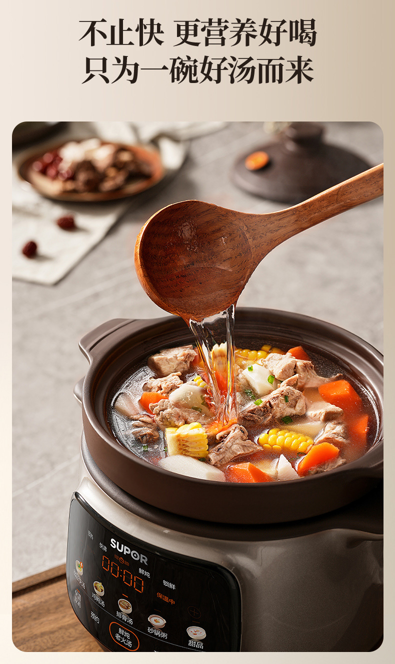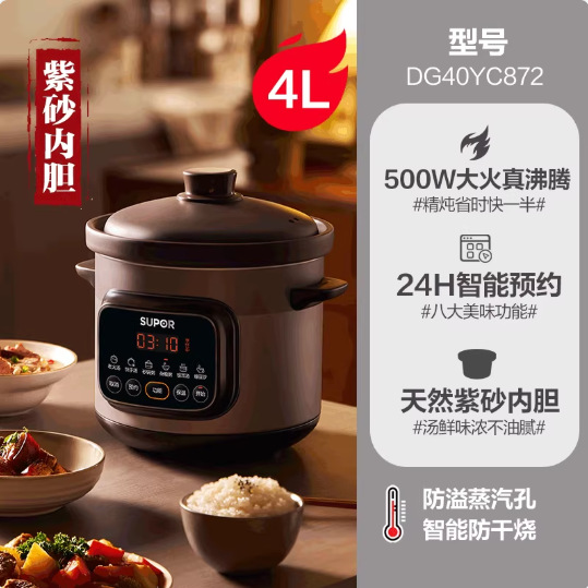 苏泊尔快炖电炖锅煲汤锅紫砂电砂锅煲陶瓷自动5L大容量DG50YC872