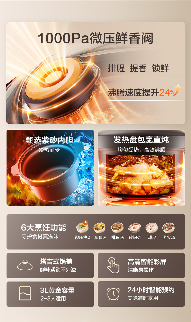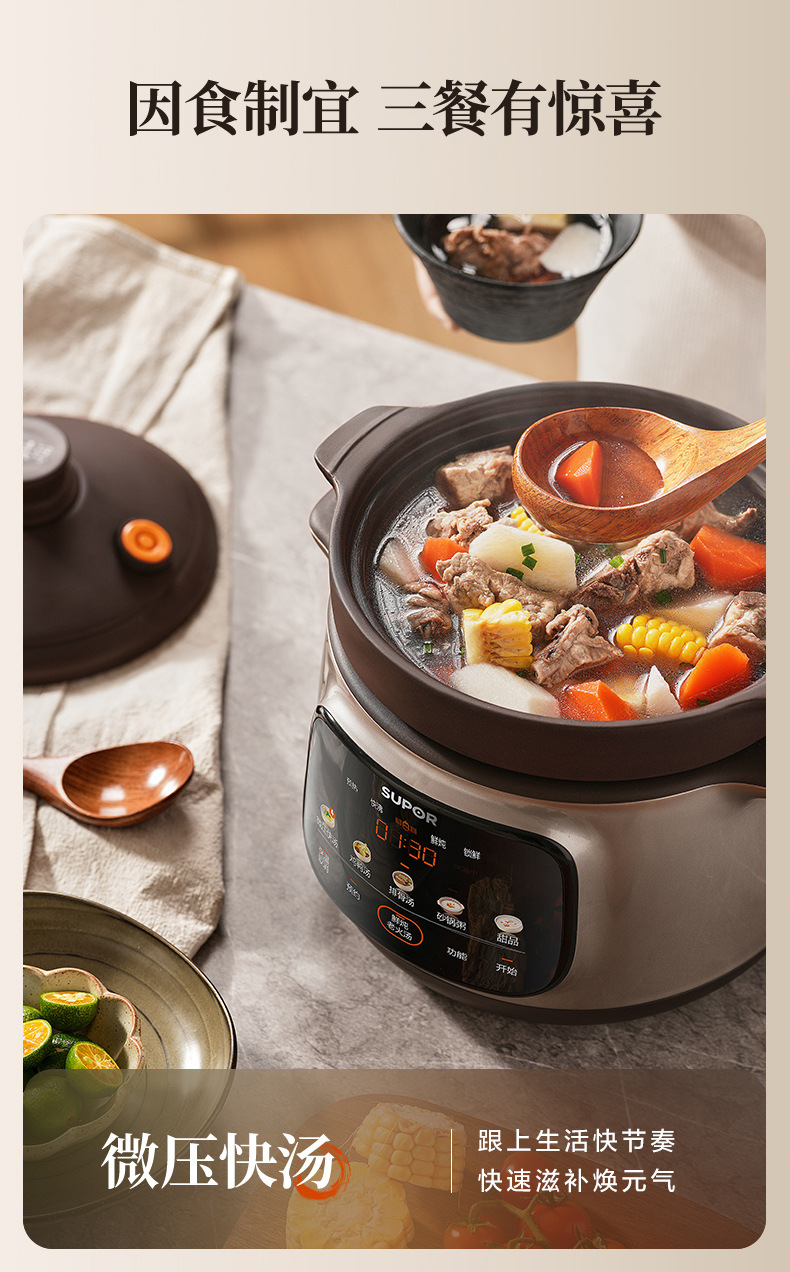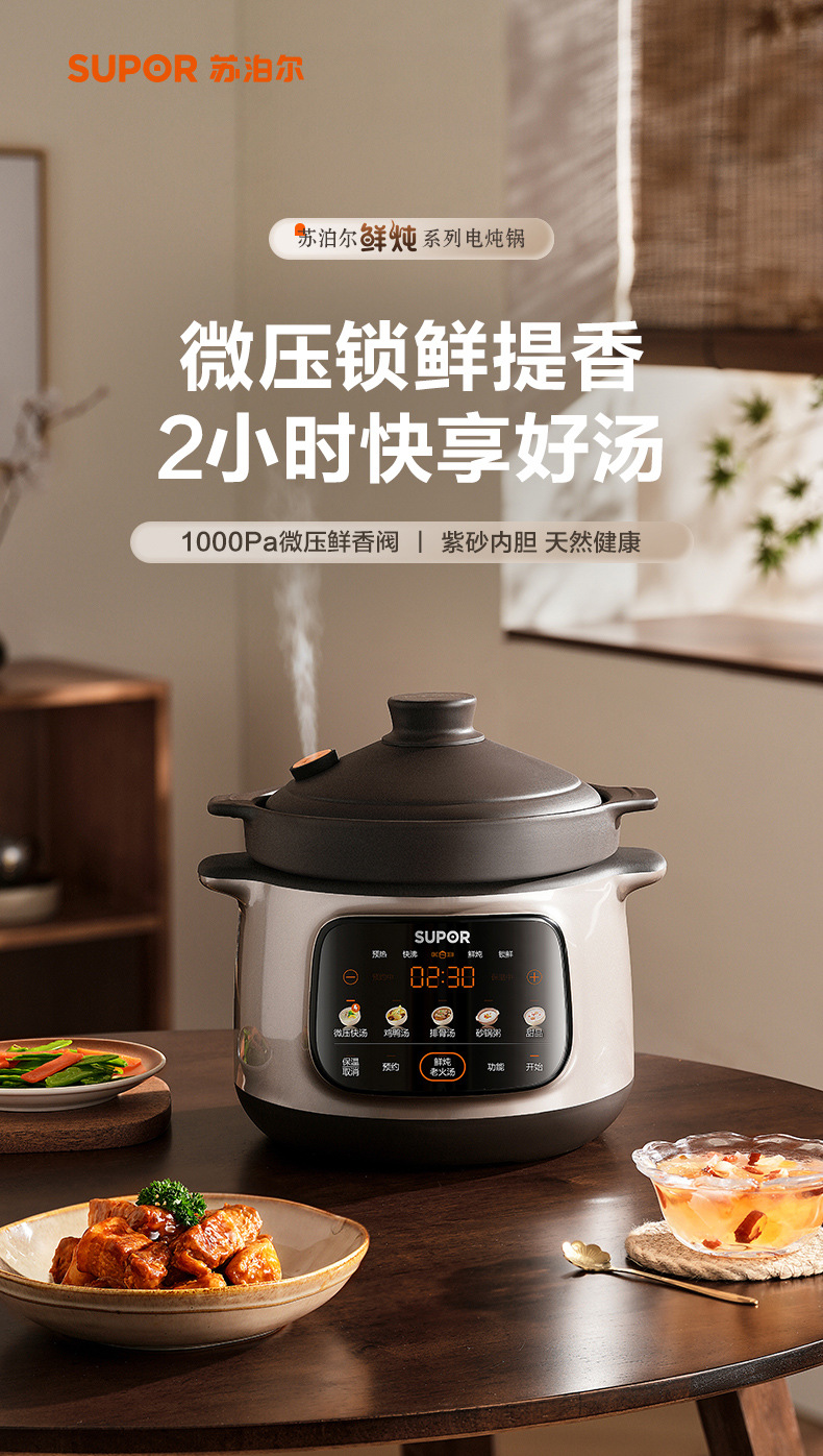 苏泊尓电炖锅紫砂锅微压全自动煲汤多功能家用2025新款大容量炖汤